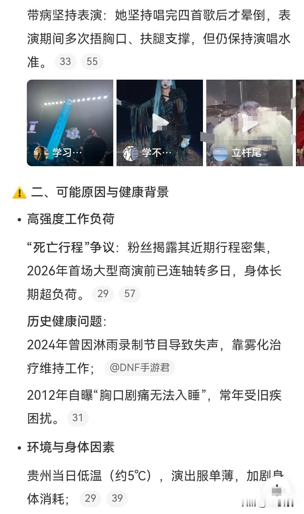 一定要注意身体,如果身体不行了,赚再多的钱都没意义了。 2月1日,于文文演唱会晕倒。 她的工作太多了,长期处于超负荷状态。 这么下去肯定会出问题的。 这次就晕倒了。 看来要减少工作量了,不能这么疲惫下去了。 要是出现重大意外就麻烦了。