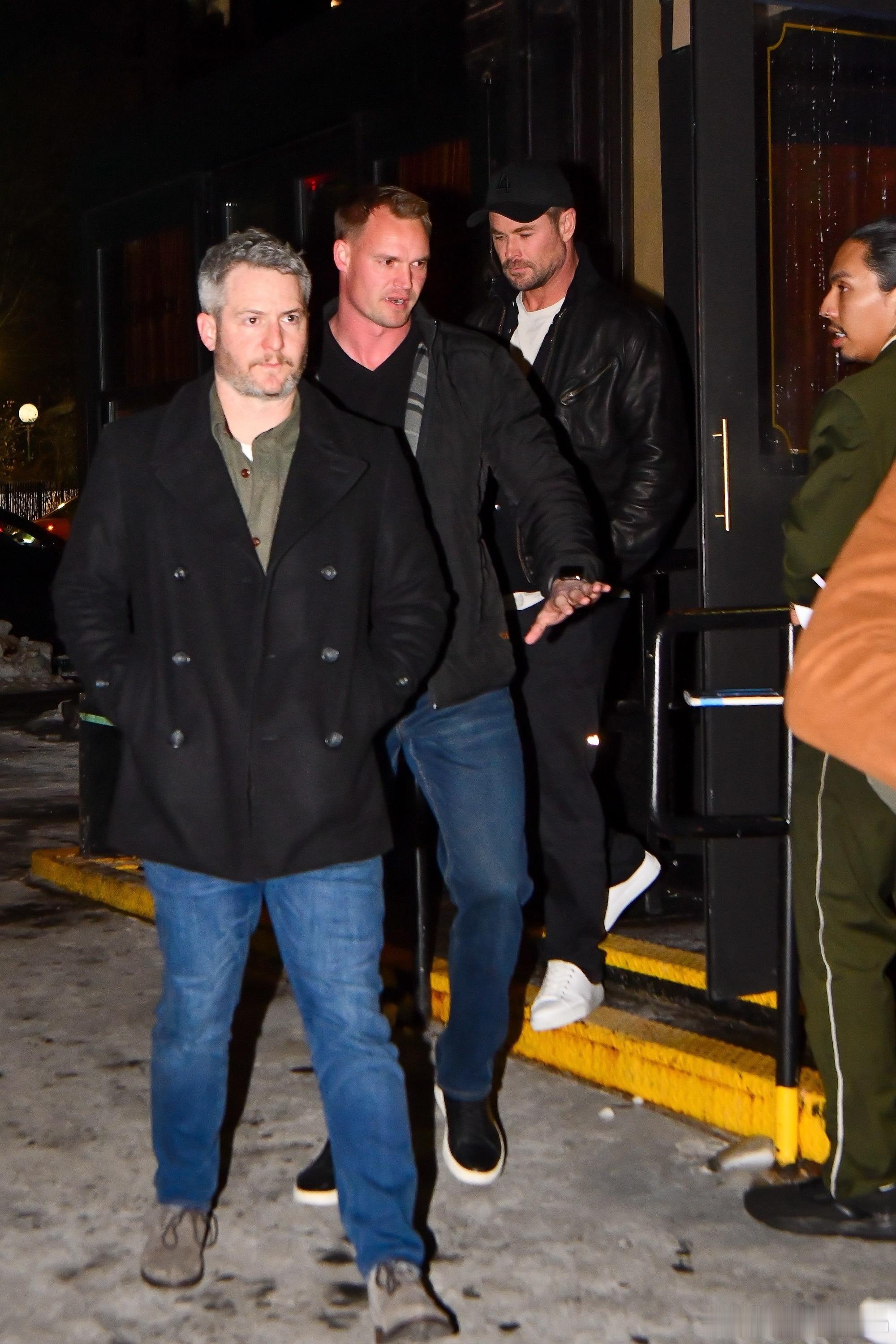 Chris Hemsworth克里斯海姆斯沃斯在纽约外出,与好友Matt Damon两口子聚餐后离开Corner Store餐厅