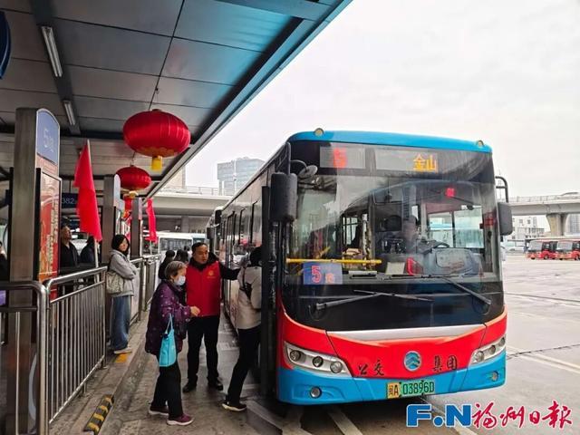 在福州站、福州南站等公交枢纽站内显示屏刊播春节期间免费乘车宣传海报,粘贴春运地图,方便市民乘客查阅。穿着红马甲的志愿者为往来旅客提供问询、引导和帮扶服务,并主动宣传免费政策,倡导文明绿色出行。