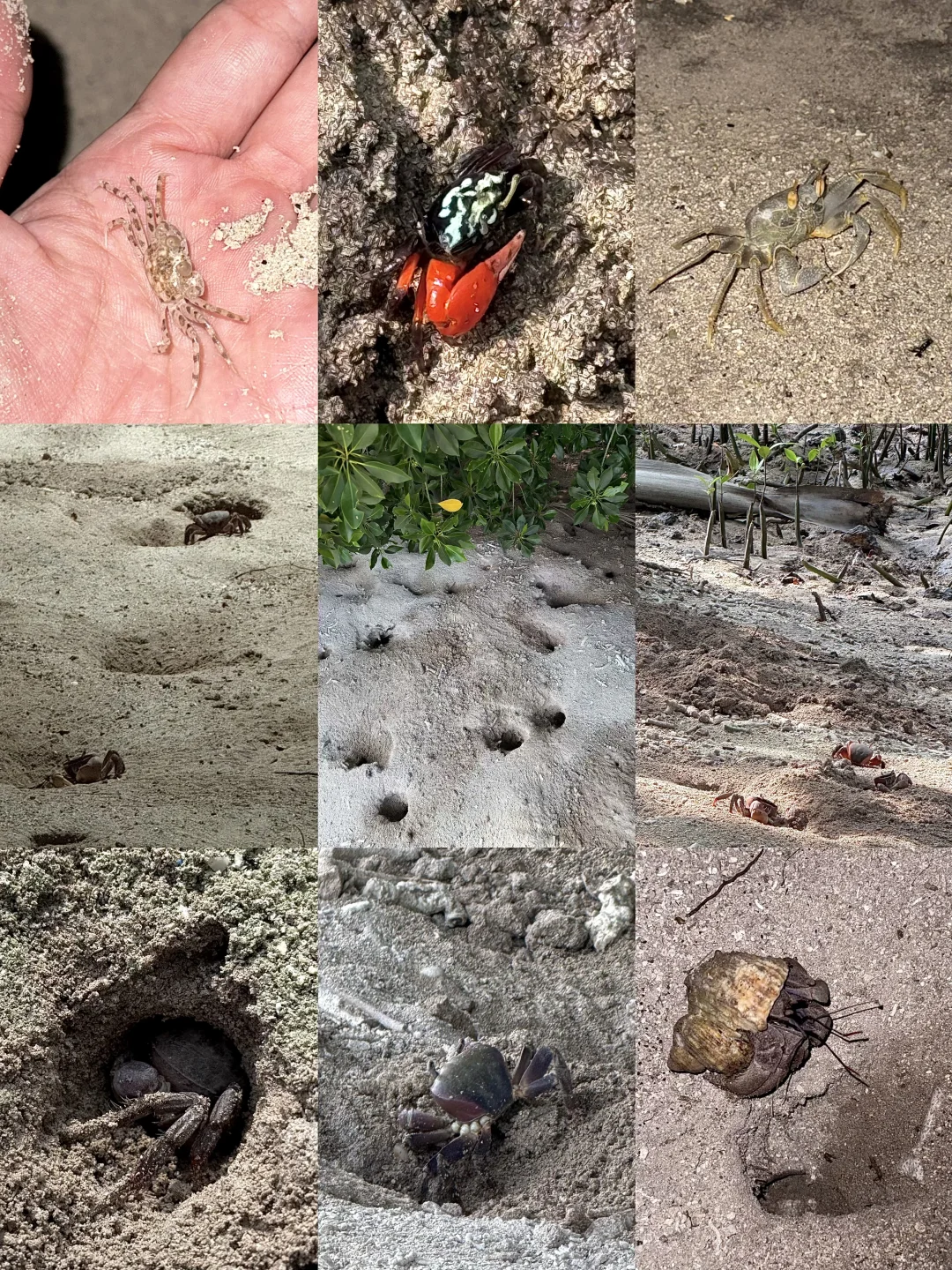 至少有4种螃蟹 最小的红蓝配色超鲜艳(应该不能吃)主要吃棕红色大个头那种 有的真的长很大!