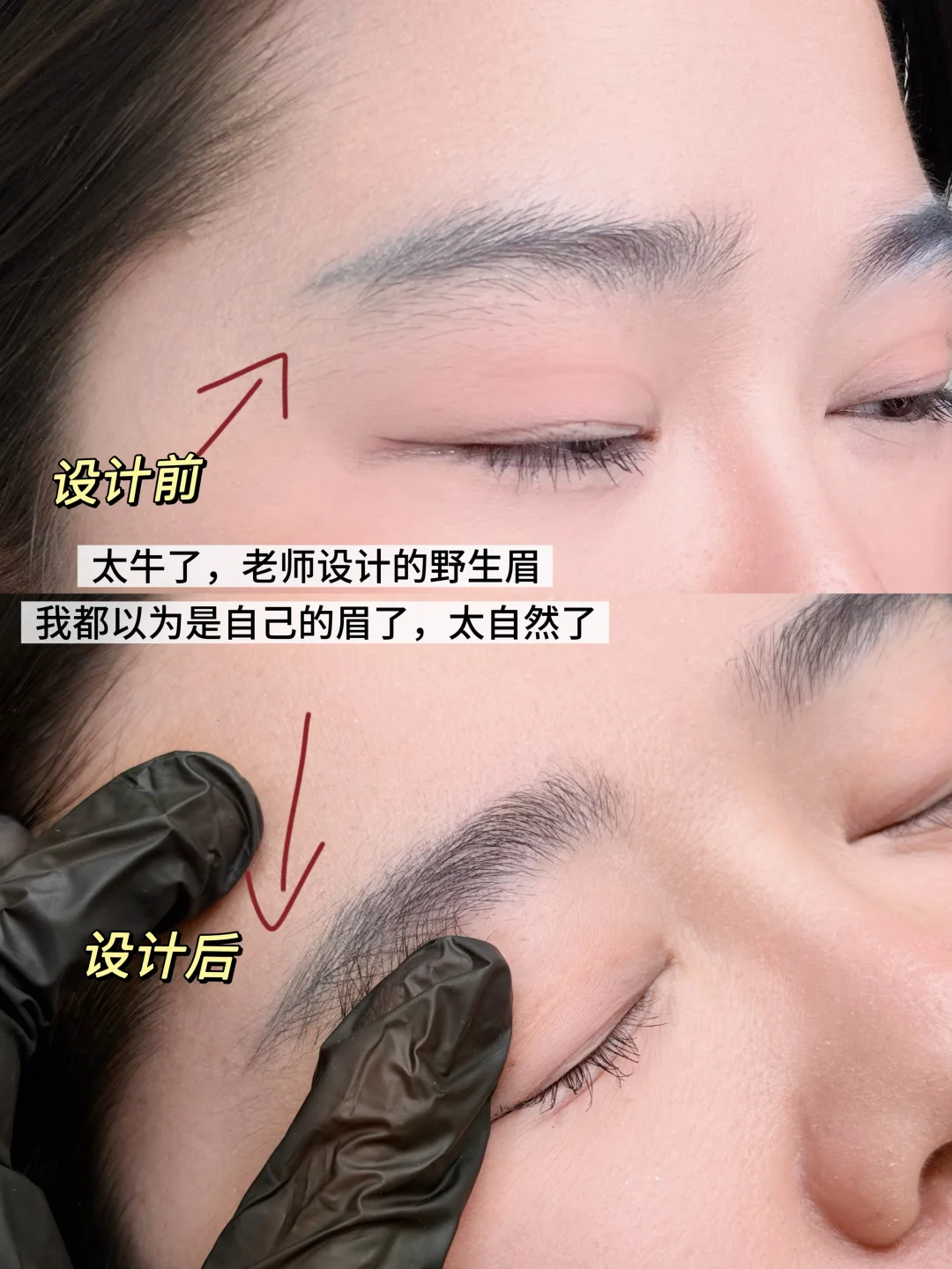 老师们很有经验,特别是陈老师有12年经验了(需要预约),老师根据我脸型设计了野生眉,一开始给我设计完,我都没反应过来这有啥区别,原来是因为设计的太原生态了🤣导致我自己都没分辨出来,这技术无敌了!!就是我想要的效果!