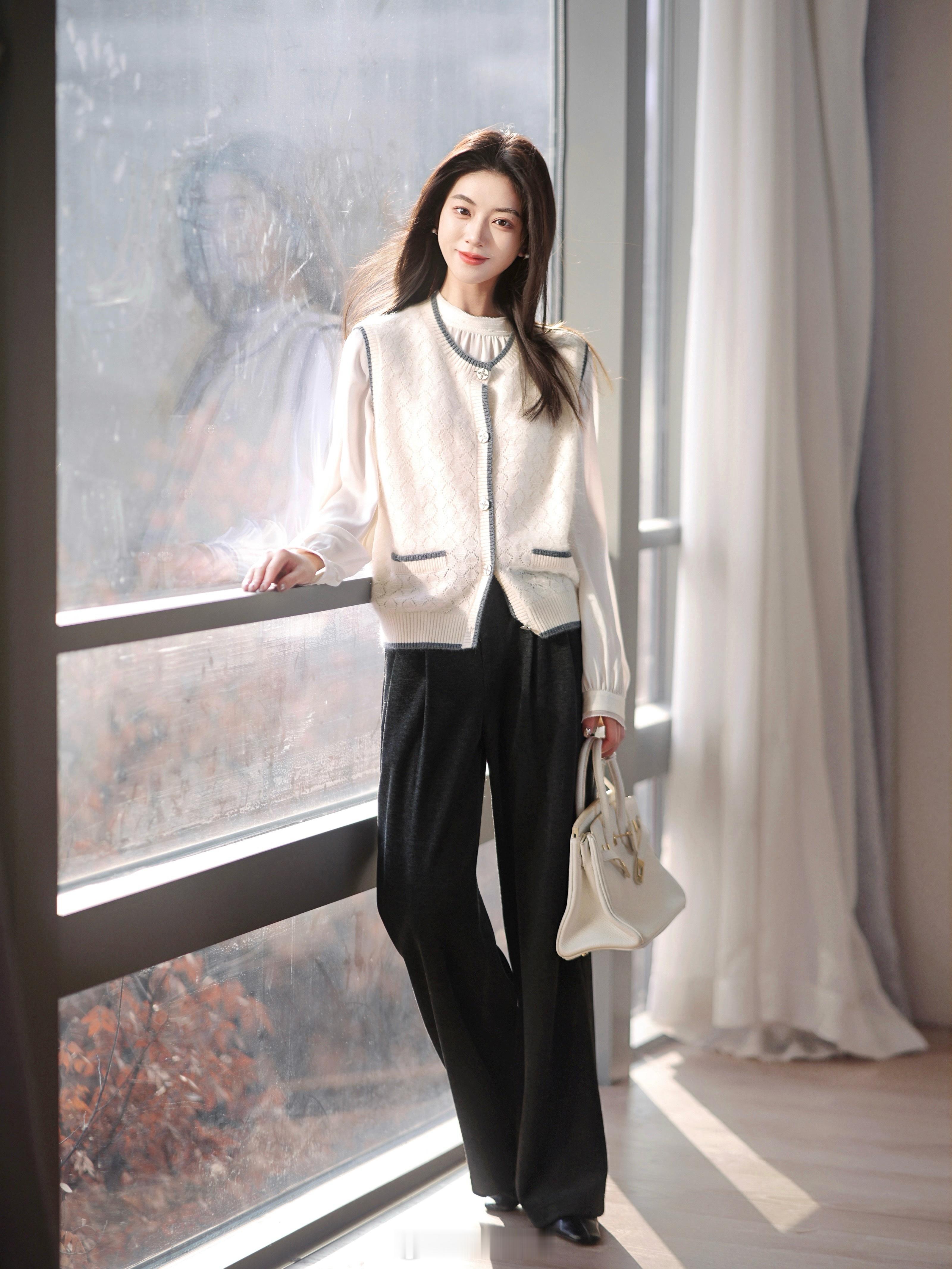 贵气又灵动的香香~就很piu 亮啊细腻真丝*羊绒/拉绒工艺再加撞色+镂空花纹点缀 喜欢到不想脱~ps:马甲/开衫两个版 姐妹们今晚冲啦