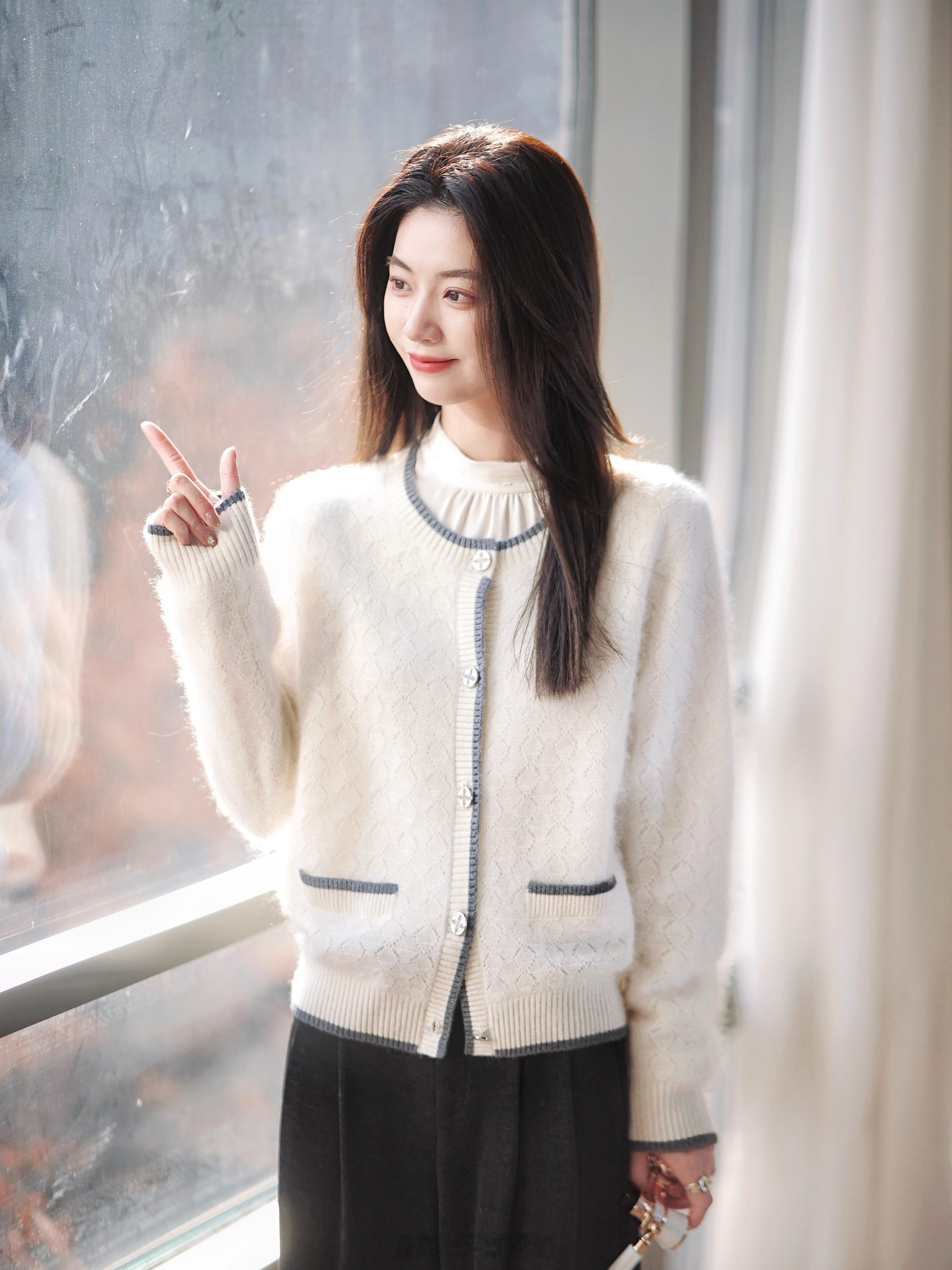 贵气又灵动的香香~就很piu 亮啊细腻真丝*羊绒/拉绒工艺再加撞色+镂空花纹点缀