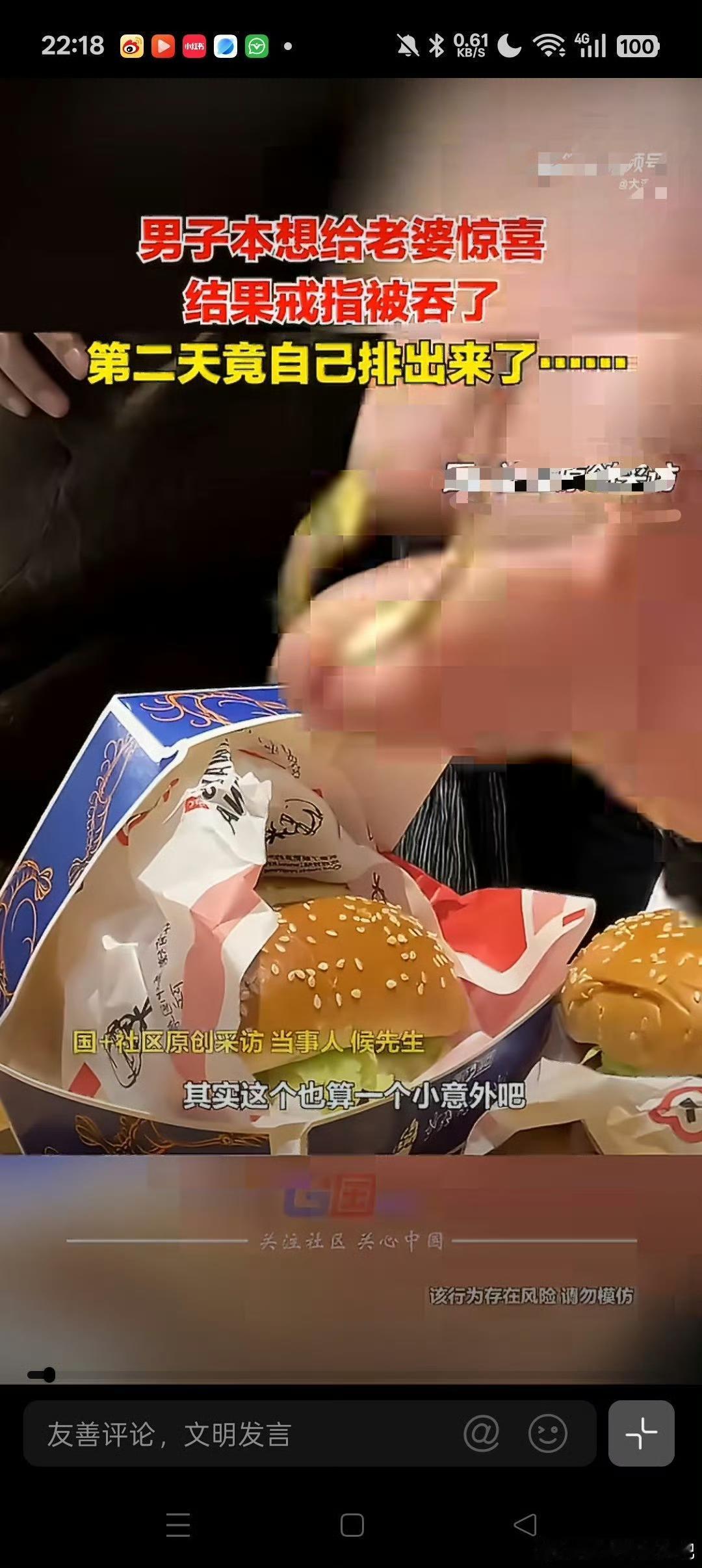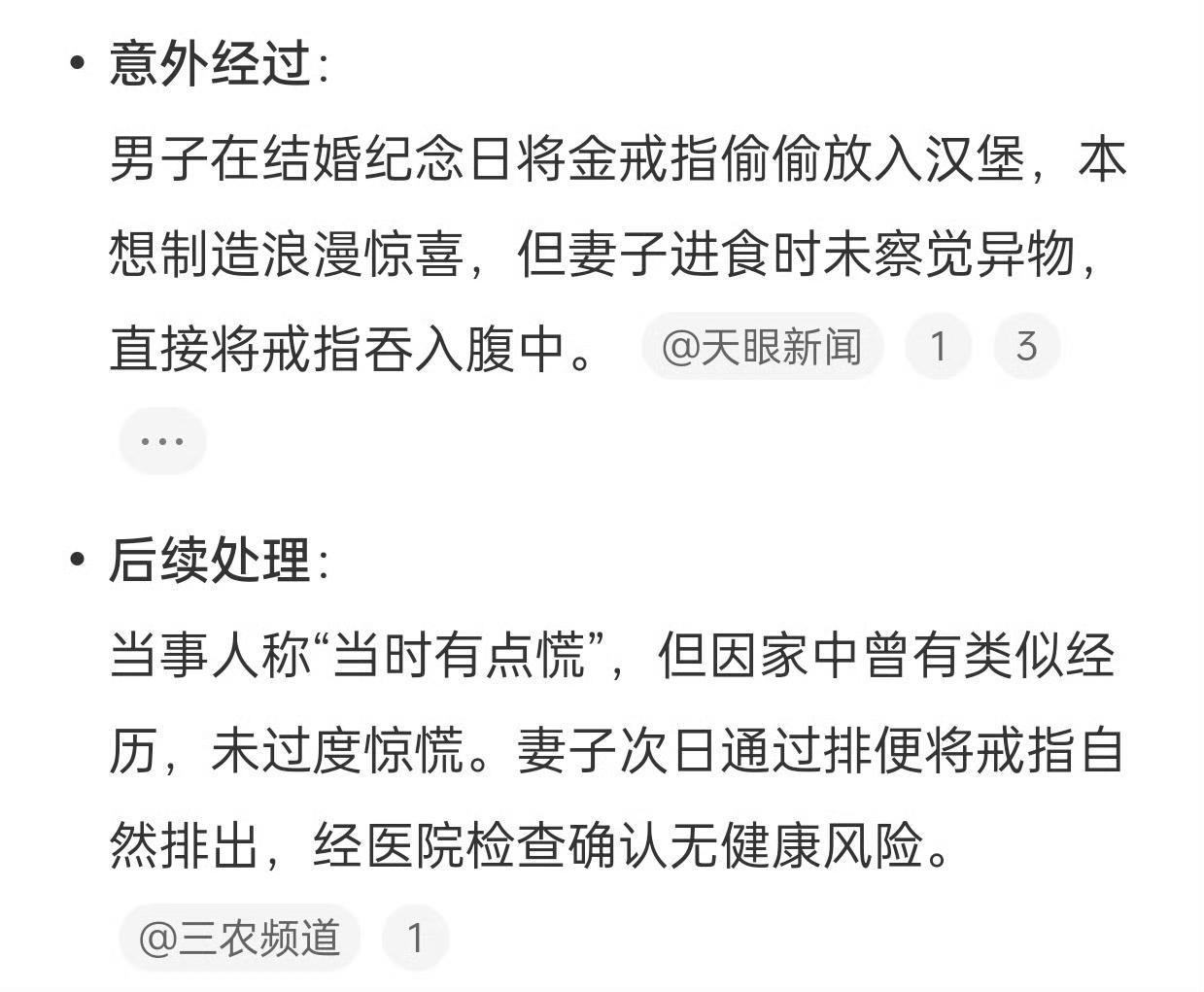 🔥最惊悚惊喜!男子汉堡藏戒指被老婆一口吞下:次日排出,医生:这波操作太危险