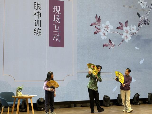 演出环节,晨鹃、富秀珠以轻盈台步与婉转唱腔,生动呈现《梁祝》中“同窗三载”的深情厚谊。萧雅老师随即剖析这段经典中的“隐喻艺术”:“祝英台借‘家中九妹’暗许终身,梁山伯却浑然不觉。这段‘比翼鸟’‘连理枝’的唱词,既是人物情感的递进,也是越剧‘以物寓情’的典型手法。”一位参与体验的市民感慨:“原来越剧的‘好听’背后藏着这么多技巧,今天算是开了眼界!”