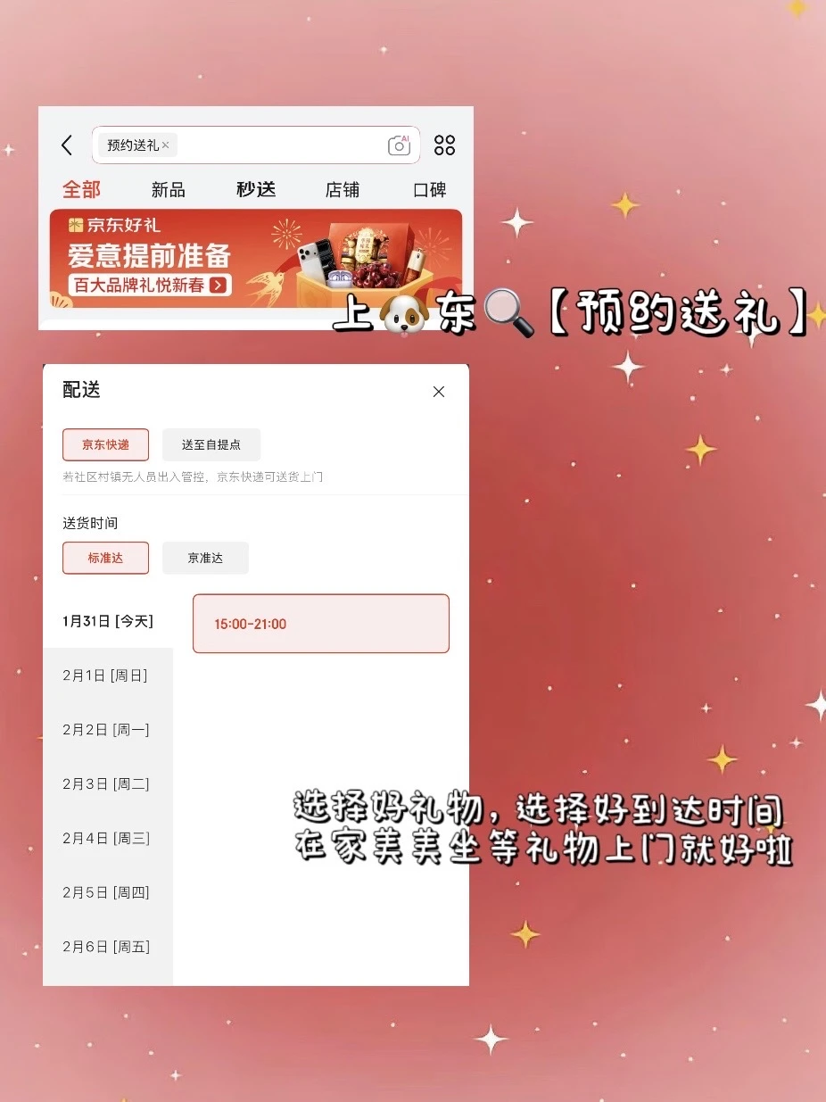 ✨不仅划分了不同的送礼人群,而且🔍「预约送礼」还能提前20天⏰预约送礼时间,🐶东你也太贴心了吧💕