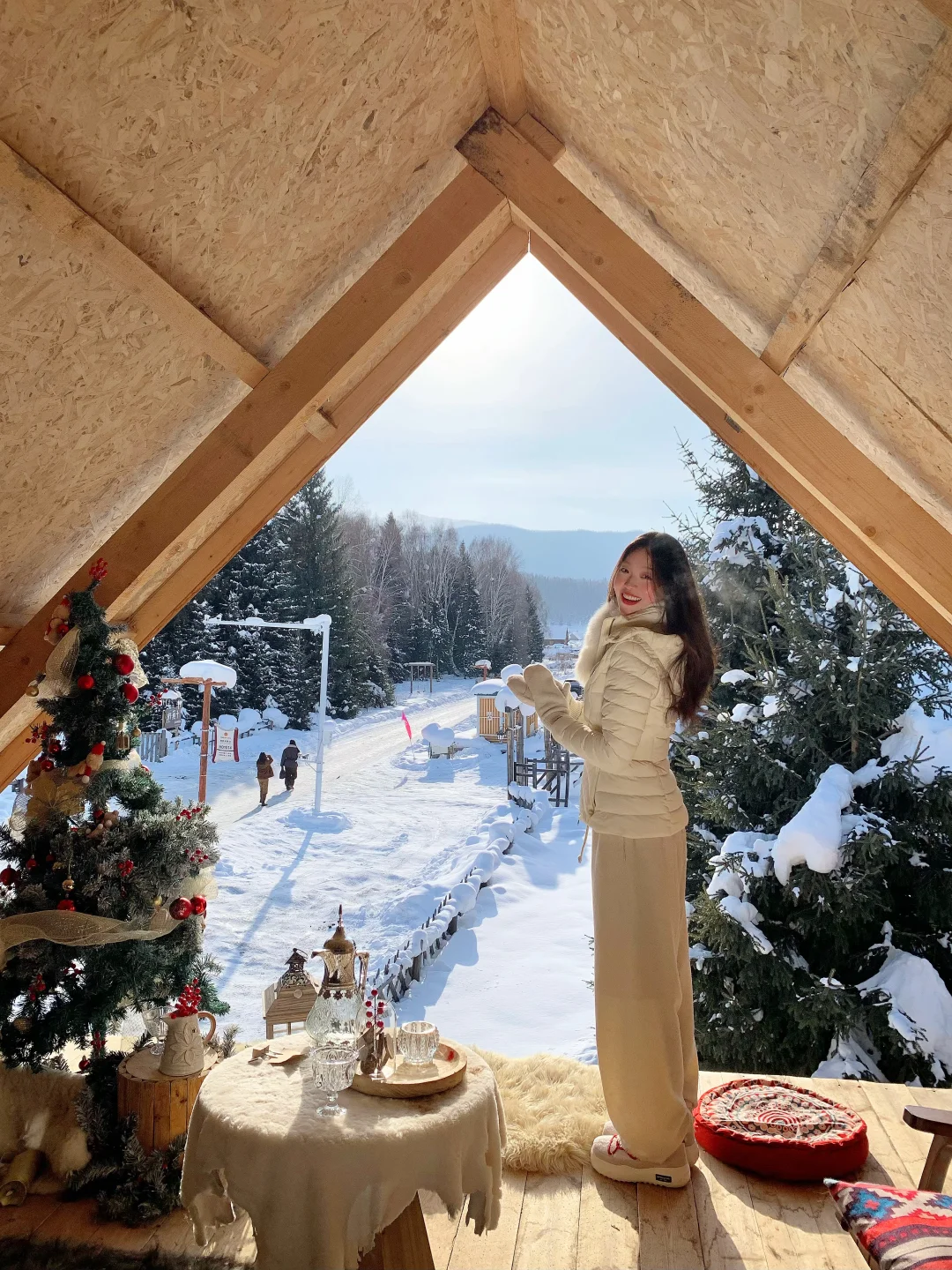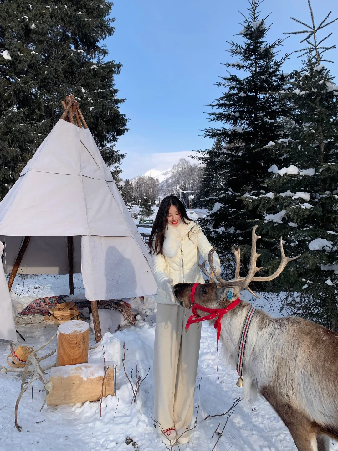 好美的雪景和可爱的木屋! 驯鹿咖啡厅还可以喂小鹿🦌 下次还来👩🏻❤️💋👩🏻 (就是飞机飞太久了…)