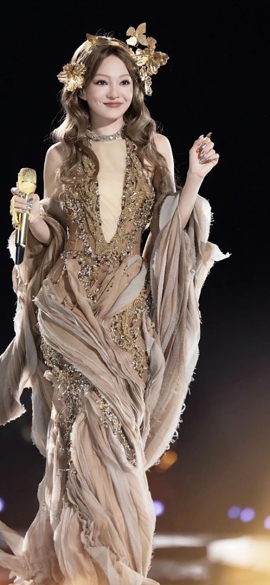 张韶涵把精灵气质拿捏得死死的张韶涵真的把精灵气质焊在骨子里了,妥妥的内娱精灵感天花板,这气质拿捏得死死的!天生的小巧精致骨相,清冷眼眸眸光如星,瘦而不柴的轻盈体态,自带精灵独有的纯粹灵动与疏离仙气,别人是演精灵,她直接活成了精灵本灵!从跨年舞台粉金渐变仙裙的花仙子,到佛山演唱会3D打印银鳞的人鱼精灵,再到冰蓝碎钻裙的极地精灵、薄荷绿长裙的森林精灵,每套造型都与精灵气质完美契合,重工战袍在她身上尽显灵动魅惑,追光下连发丝都飘着仙气,背影杀更是美到让人失语。更绝的是这份精灵感从不止于造型,她清亮空灵的嗓音宛如精灵之语,穿透舞台直抵人心,再加上刻在骨子里的自律,十几年戒糖、为驾驭重工造型提前强化训练,让40+的她依旧保持着少女般的鲜活,将精灵的轻盈与坚韧完美融合,一登台便自带童话滤镜,这份形神兼备的精灵气质,真的无人能及!