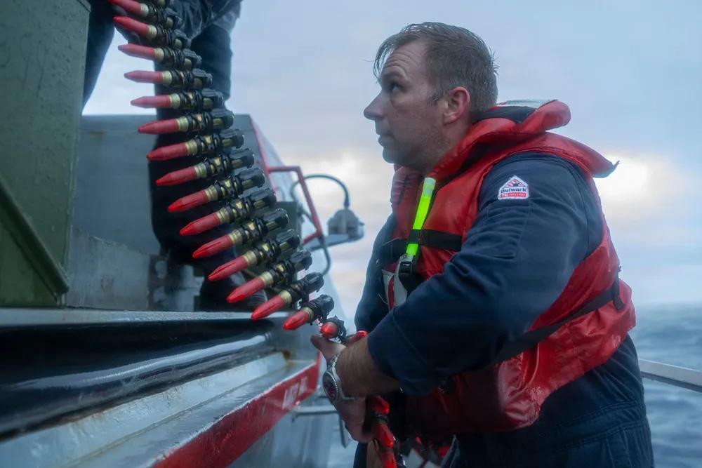 美军的军力也就如此。 2026年1月6日,北大西洋,美国海军火控员,分配到阿利·伯克级导弹驱逐舰布尔克利号(DDG 84)上向近迫武器系统(CIWS)上载弹药。 布尔克利号正在按计划部署于美国第六舰队作战区,支持美国欧洲-非洲海军部队的作战效能。