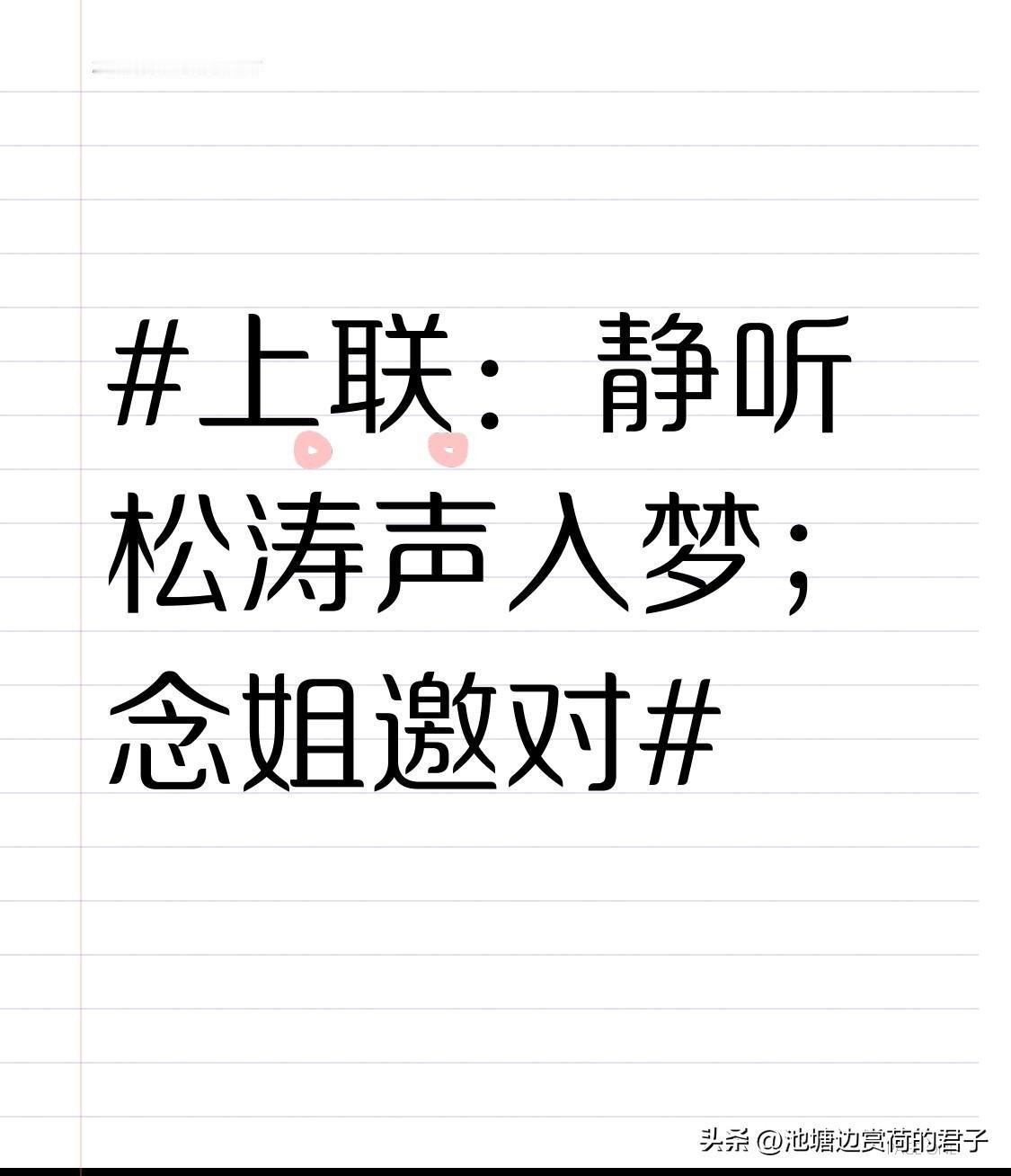 看到“静听松涛声入梦”这个上联,瞬间感觉意境超美,仿佛人已置身静谧山林,伴着松涛安然入睡。我来对个“闲赏竹影韵盈心”。 “闲赏”对应“静听”,都是悠然的状态;“竹影”和“松涛”都是自然之景,一静一动;“韵盈心”与“声入梦”相互呼应,赏竹影而让心中满是韵味,就像听松涛声进入梦乡一样美妙。这一上联一下联,勾勒出了自然与心境交融的美好画面,你们觉得我对得咋样?