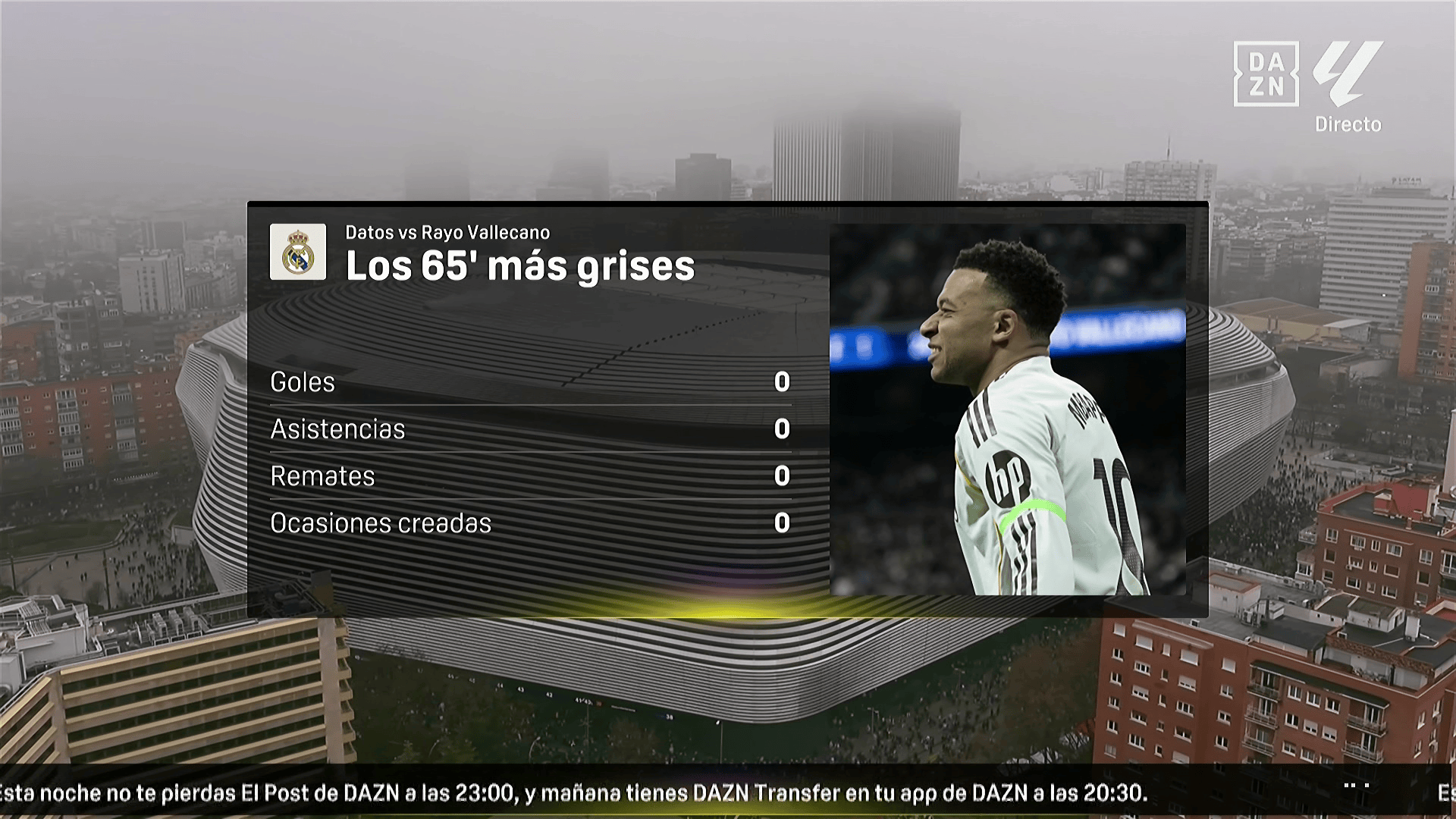 终场哨响后,转播方DAZN给出了一张极具象征意义的画面——这是姆巴佩加盟皇马以来最灰暗的65分钟。没有进球,没有助攻,没有射门,也没有创造出任何得分机会。对于一名本赛季已在各项赛事中打入37球的前锋来说,这样的数据几乎不可想象。这37球分布在联赛22球、欧冠13球以及国王杯2球,他一直是皇马进攻端的绝对核心。