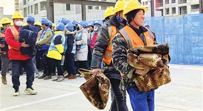 近日,市总工会联合市建筑业协会等单位来到中建五局天保19号地项目开展慰问活动。工作人员将棉服、保暖手套等防寒物资送到一线施工人员手中,让他们感受到“娘家人”的温暖。