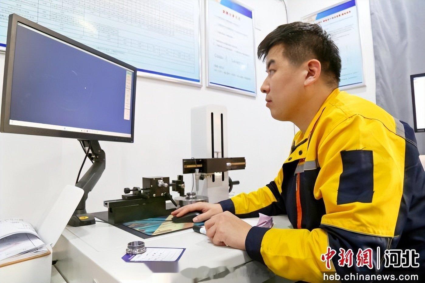 图为在馆陶县一家轴承生产企业实验室,检测人员在测量轴承圆度。郭江鹏摄