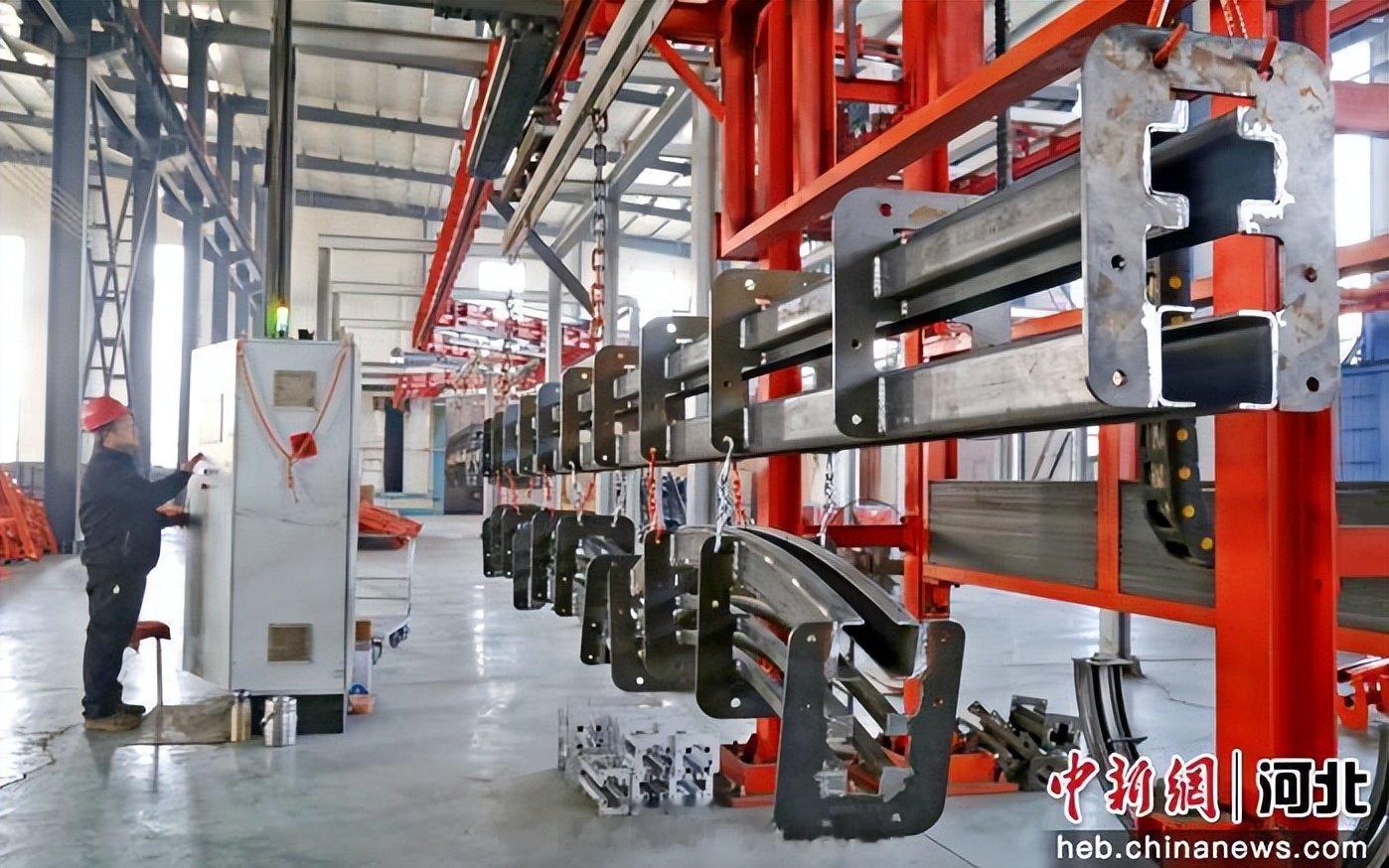 图为在馆陶县一家轴承生产企业车间,工人在操作悬挂积放链喷粉系统。郭江鹏摄