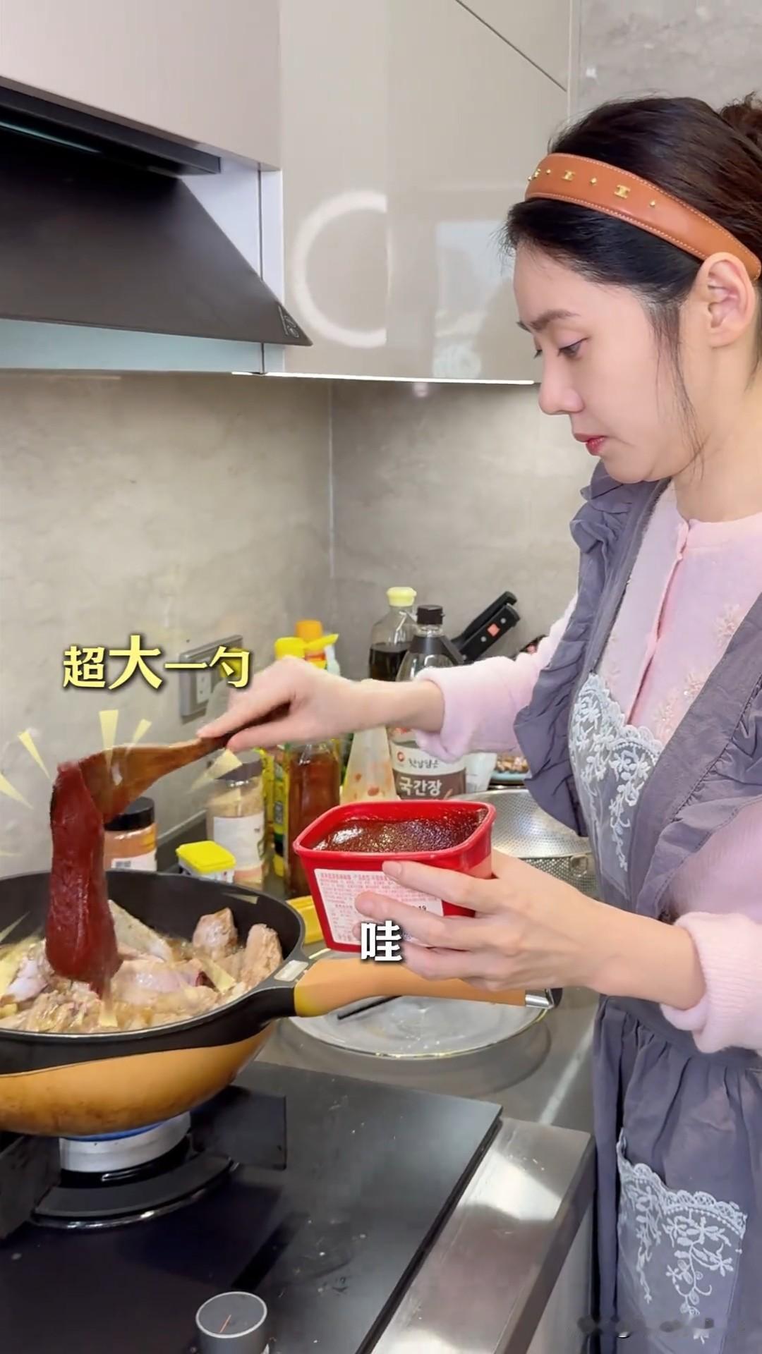 2月1日,秋瓷炫更新美食vlog,她这次做的是“韩式辣炖排骨”,我们一起来看一看她是怎么做的吧? 第一步:热锅烧油,将葱姜蒜爆香; 第二步:放入猪排和调味料持续翻炒,具体包括料酒、胡椒粉、酱油、白糖、韩式辣酱、辣椒面、番茄酱、蒜泥和蚝油。 第三步:加水至没过排骨,盖上锅盖炖煮。 今天早上我刚做了排骨炖萝卜,调味料我只放了姜葱蒜和料酒,味道相对比较清淡。 秋瓷炫放的调味料也太多了,难怪味道比我做的好吃,好奇她用的是哪一款韩式辣酱?