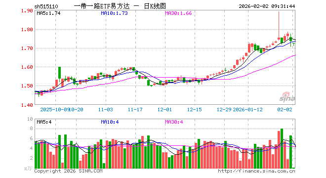 一带一路ETF易方达(515110)业绩比较基准为中证国企一带一路指数收益率,管理人为易方达基金管理有限公司,基金经理为刘树荣,成立(2019-11-06)以来回报为73.75%,近一个月回报为10.30%。