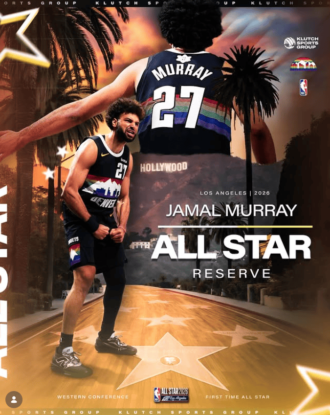 KlutchSports官方社媒晒出海报祝贺默里入选全明星:恭喜默里首次入选NBA全明星!