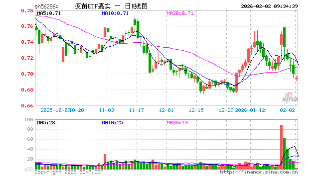 2月2日,疫苗ETF嘉实(562860)开盘跌1.00%,报0.693元。疫苗ETF嘉实(562860)重仓股方面,智飞生物开盘跌0.75%,沃森生物跌0.95%,万泰生物跌0.55%,辽宁成大跌2.48%,康泰生物跌0.96%,甘李药业跌0.92%,特宝生物跌0.57%,山东药玻涨0.10%,华兰生物跌0.45%,复星医药跌0.52%。