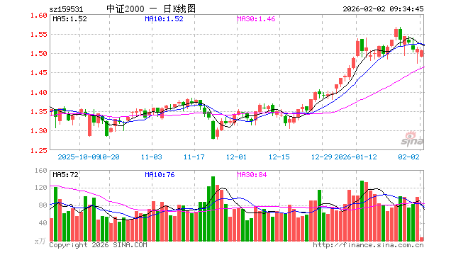2月2日,中证2000ETF(159531)开盘跌1.26%,报1.490元。中证2000ETF(159531)重仓股方面,平潭发展开盘跌0.48%,天际股份跌1.88%,精智达跌1.90%,信息发展跌0.35%,顺灏股份涨2.37%,腾景科技涨0.97%,斯瑞新材涨1.41%,振华股份跌2.46%,嘉元科技跌1.35%,超捷股份涨2.02%。