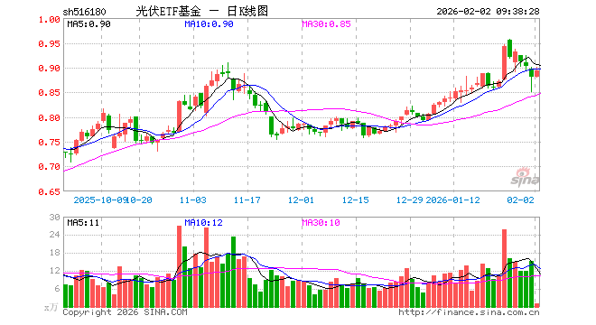 2月2日,光伏ETF基金(516180)开盘涨0.00%,报0.880元。光伏ETF基金(516180)重仓股方面,特变电工开盘涨4.52%,隆基绿能涨1.57%,阳光电源涨1.43%,TCL科技跌1.65%,通威股份涨1.65%,迈为股份涨3.09%,德业股份跌0.56%,正泰电器涨1.61%,TCL中环跌0.32%,捷佳伟创涨2.78%。