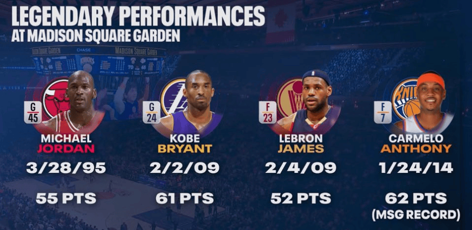 2014年—卡梅罗-安东尼—62分(MSG得分纪录)