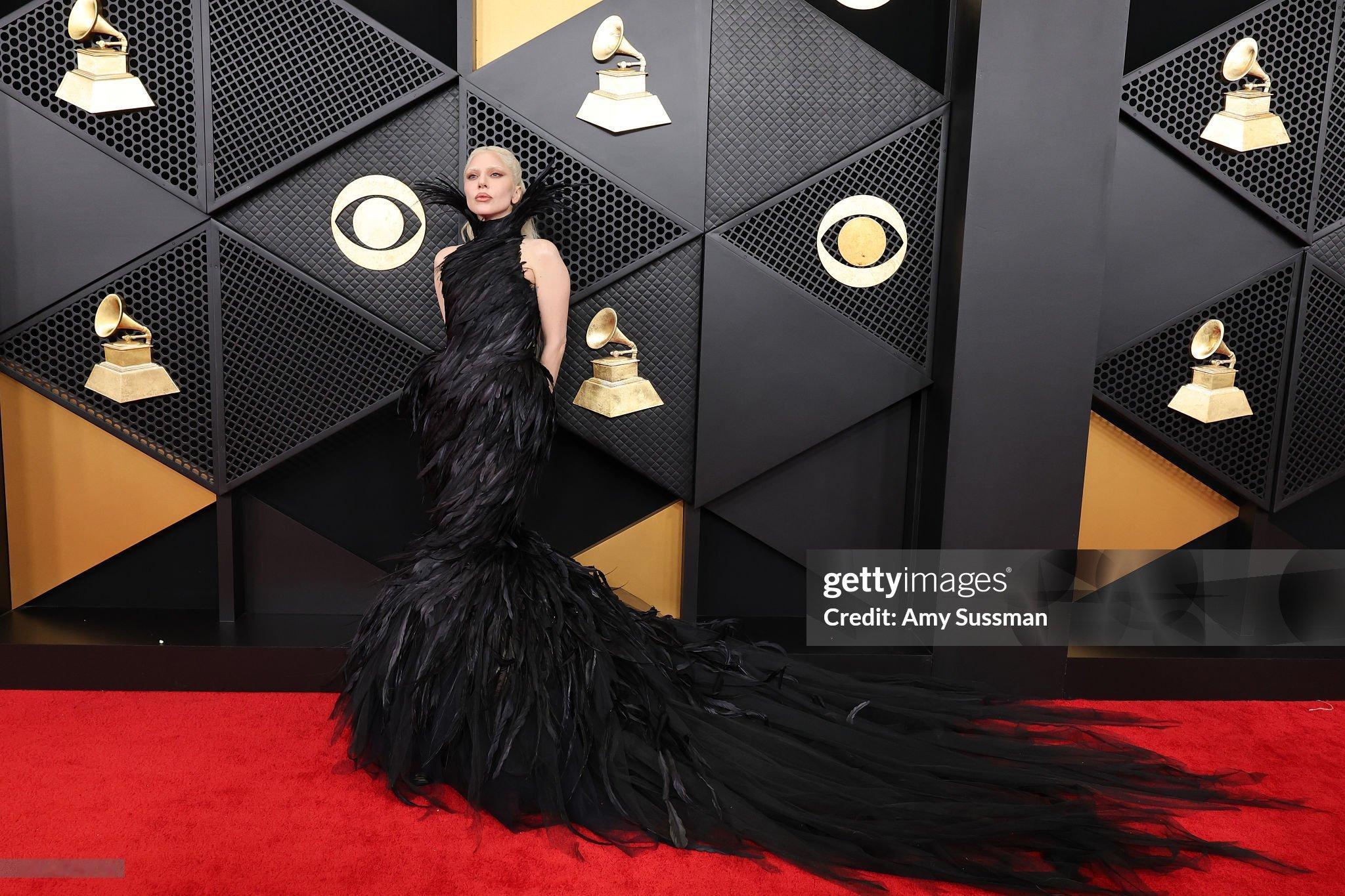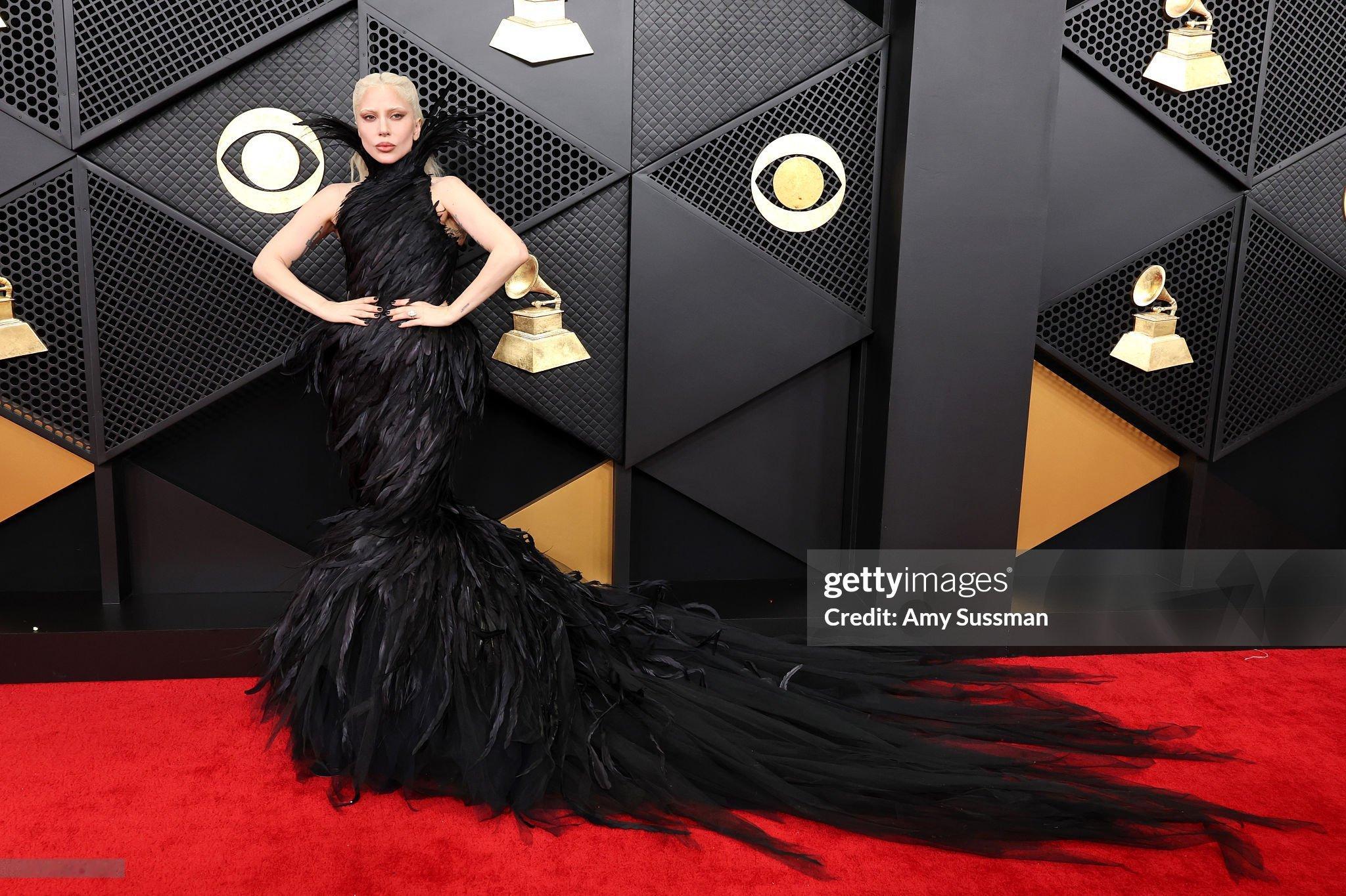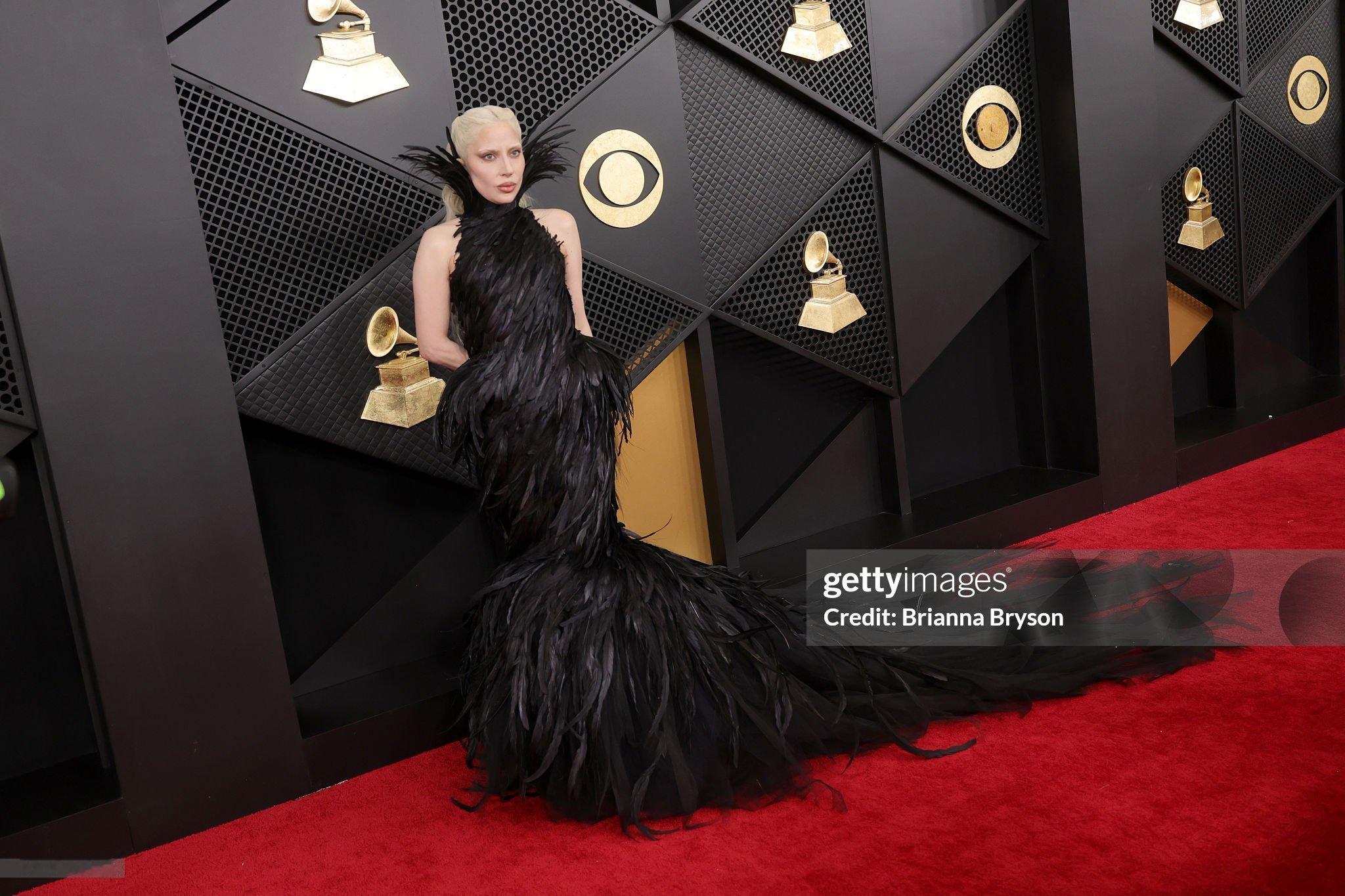 Lady Gaga 以一身 Matières Fécales 特别定制黑色羽毛拖尾礼服登上 格莱美 红毯 !