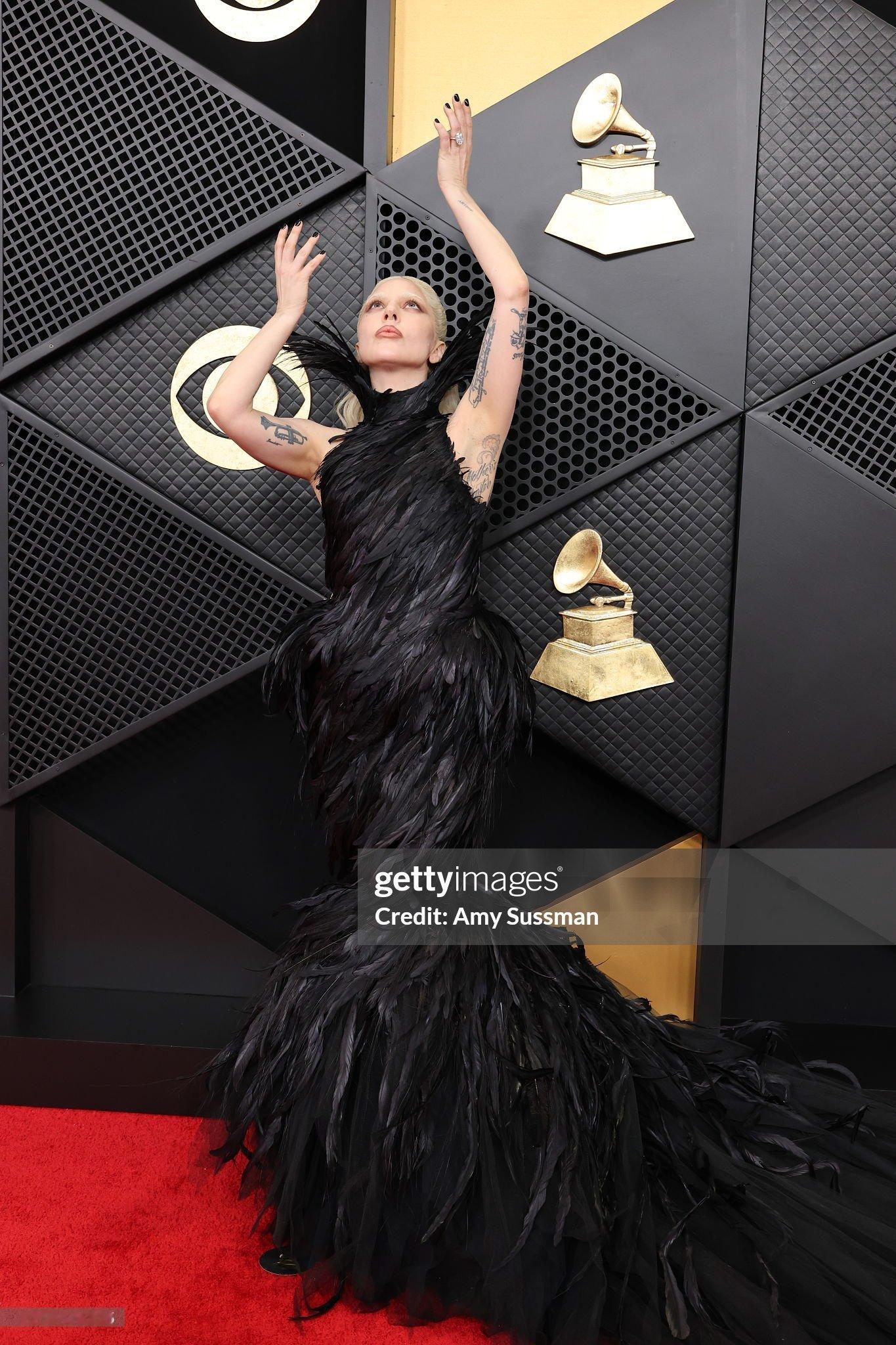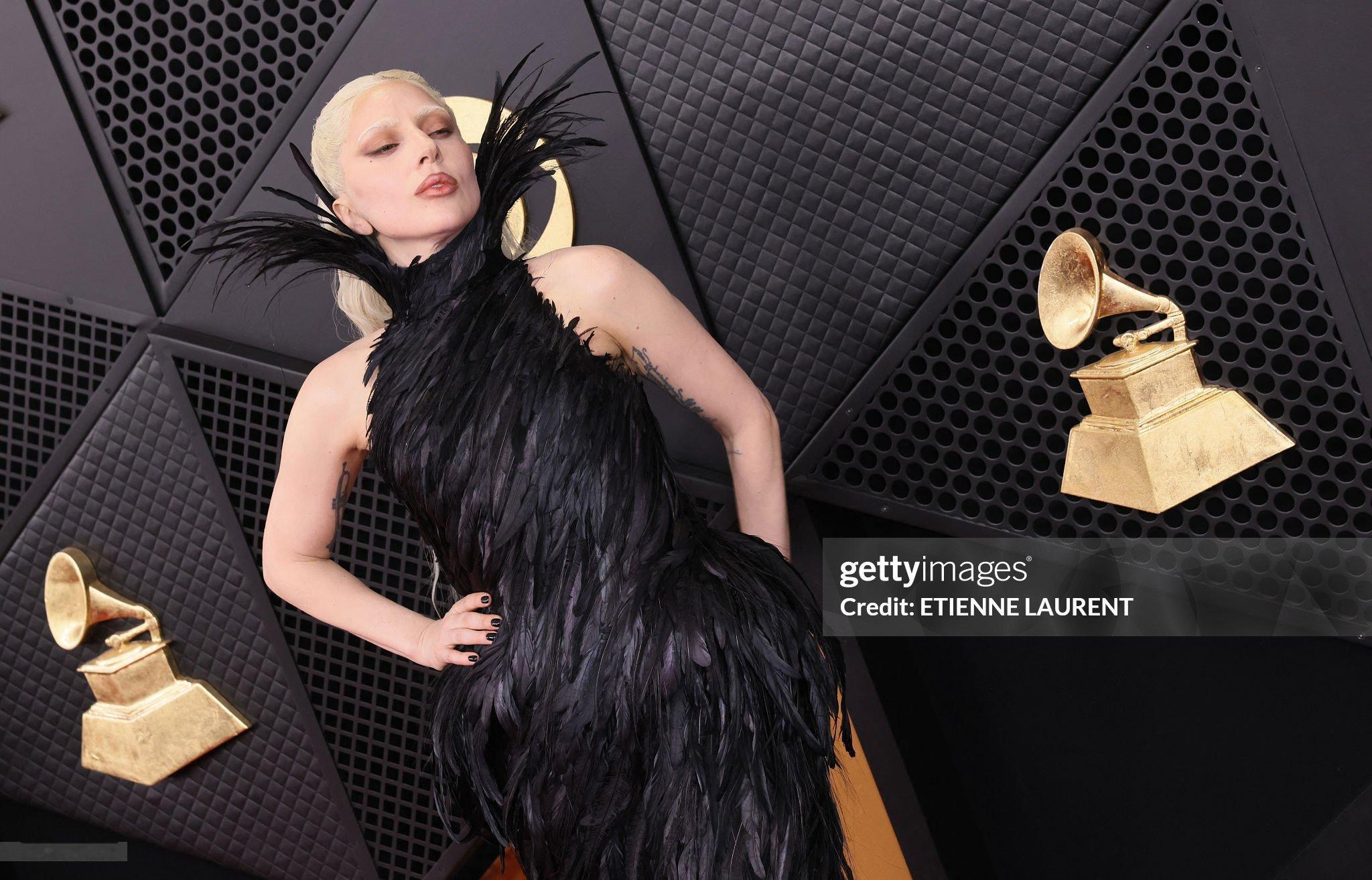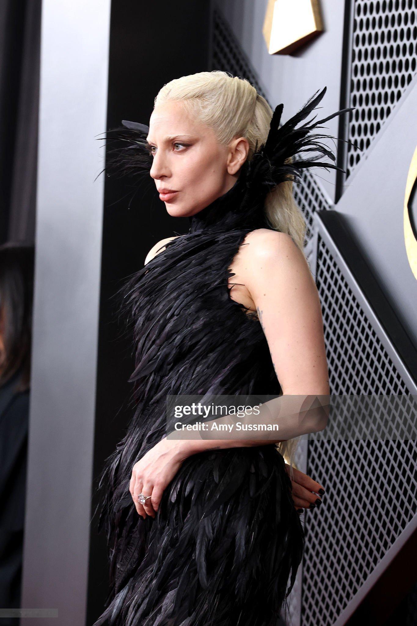 Lady Gaga 以一身 Matières Fécales 特别定制黑色羽毛拖尾礼服登上 格莱美 红毯 !