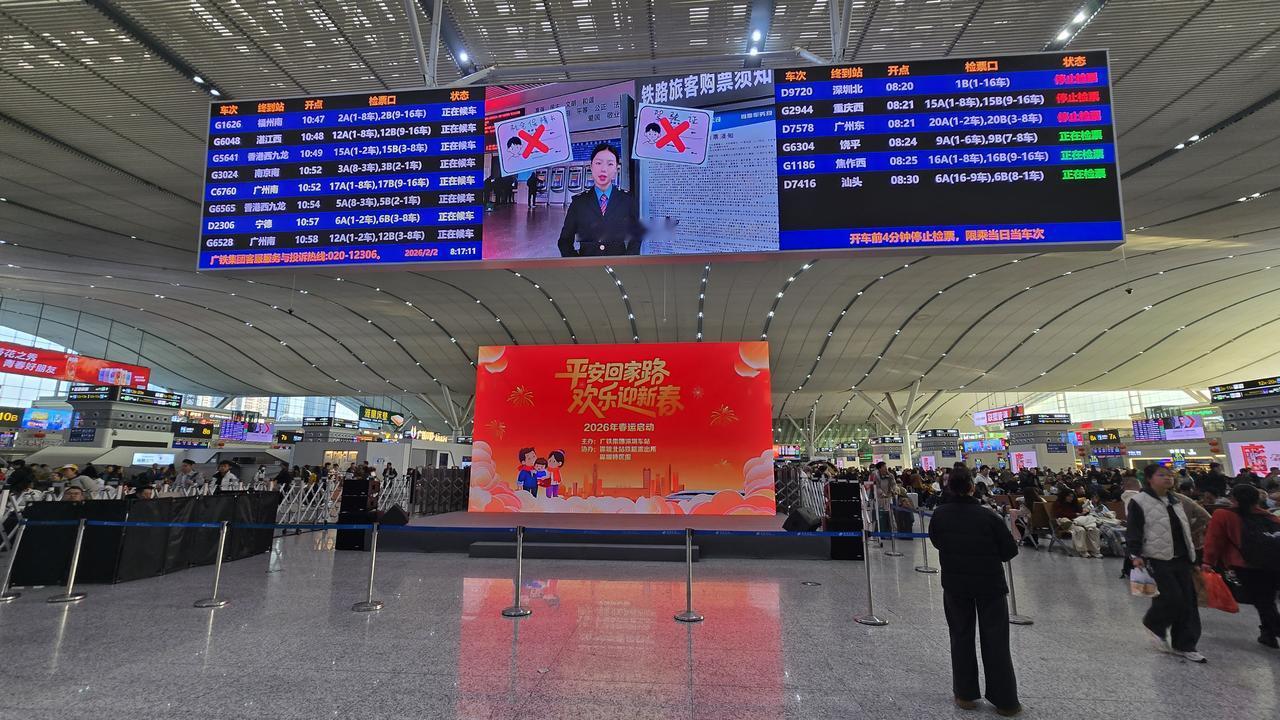 今天春运第一天,高Sir因要起程赴阳江开两会,第一次亲身感受一年一度的「人类大迁徙」,成为最早之一员。春运果真名不虚传,提提大家目前呼吸道传染病仍处于高发季节,大家出行前,应该备好口罩、消毒湿巾、免洗手消毒液等用品,做好保障。 高Sir祝愿大家平安、有序、温馨和文明出游,感谢全国各地的工作人员,志愿者们,为人民服务。 2026年春运由今日开始,3月13日结束,共40天。预料今年春运期间全社会跨区域人员流动总量将创历史同期新高,预计有望达到95亿人次,其中自驾出行占比约八成。春节9天假期,日均人员流动量将达到2.99亿人次,单日峰值将出现在正月初六,预计为3.4亿人次。此外,高速公路车流量单日峰值预计达7,100万辆次,新能源车出行总量也将创历史同期新高,达3.8亿辆次,总体规模和单日峰值均有望超过历史同期峰值。由于内地春运规模之大世间罕见,所以不少人称之为一年一度的「人类大迁徙」,其间民航、铁路及公路等交通需求骤增。 而国铁广州局今年春运期间对8条线路的72趟列车票价加大优惠力度,最低可至2折。今年春运在客流有望创新高的同时,「反向春运」成为一大特点,特别是马年春节有9天的超长假期,促使「反向过年」热度持续攀升。通过票价优化引导旅客错峰出行,吸引更多游客「反向春运」来广东,打卡「大湾鸡」和嘉禾望岗,体验逛花街、品早茶、赏年俗等岭南特色新春活动,感受大湾区的浓郁年味,香港高Sir诚邀全球各地友好,请到中国、广东过大年,感受咱们「广货行天下」。 直击2026年春运首日 春运今日开启