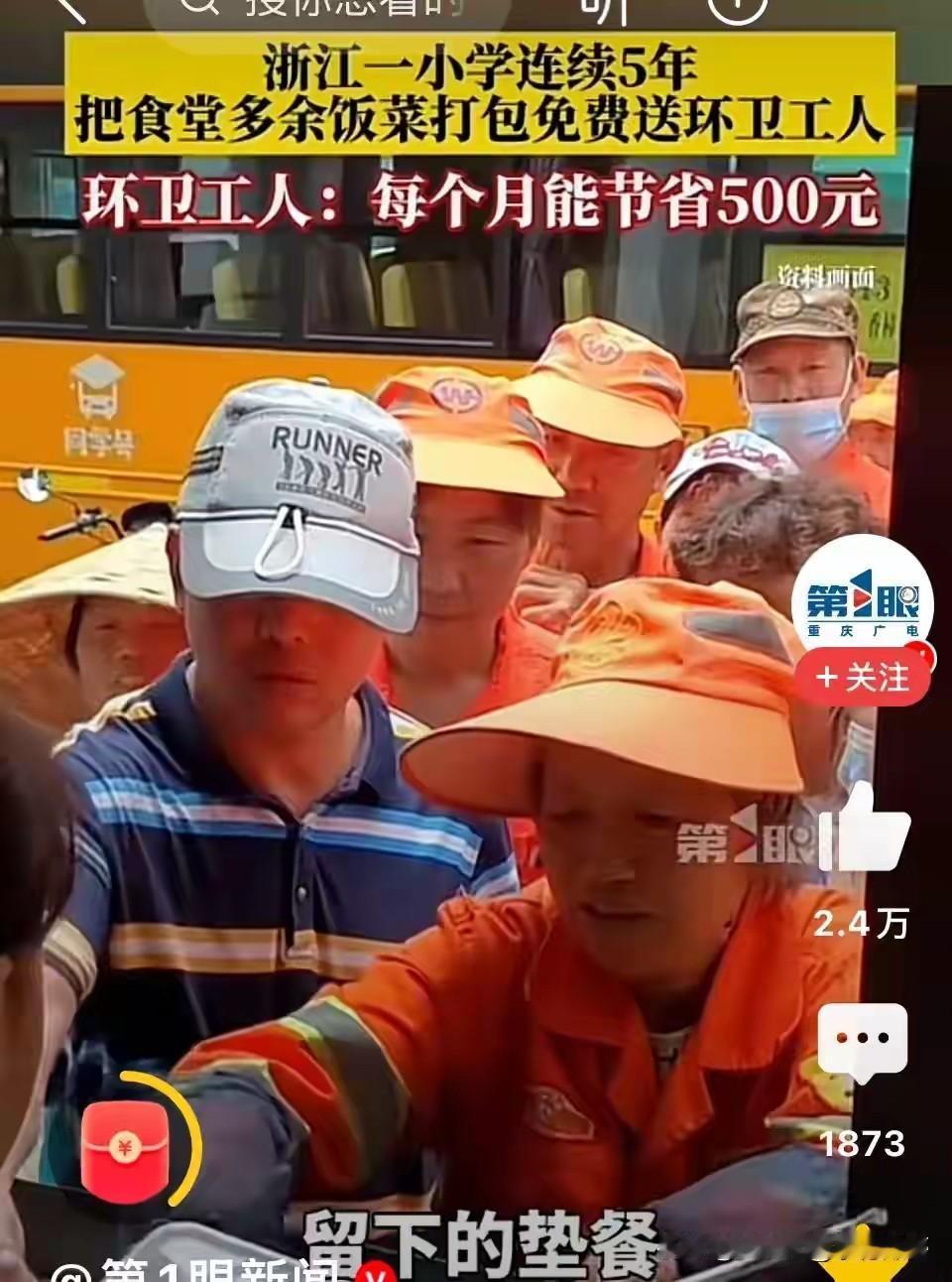 1. 浙江台州,有一所温暖的小学。连续五年,食堂的剩余热饭从不浪费——师傅细心打包,孩子踮脚递送,一份份餐食,稳稳送到环卫工人、残疾人和低保户手中。没有惊天动地,却用日复一日的坚守,让节约有了温度,让善意有了回响,这就是校园里最动人的德育课~ 2. 不是施舍,是共情;不是作秀,是坚守!台州这所小学,五年如一日,把食堂中午的热乎剩饭,变成环卫工人的暖胃餐、困难家庭的暖心食。一餐饭,暖了胃,也暖了整座城,这才是最有烟火气的正能量! 3. 从校园到街头,从剩饭到热餐,台州小学用五年时光,完成一场双向奔赴的善意:孩子学会珍惜与尊重,受助者感受温暖与尊严,一粒米的微光,汇聚成台州最柔的城市温度。浙江小学食堂 中立德小学 台州小食堂 素材来源于网络