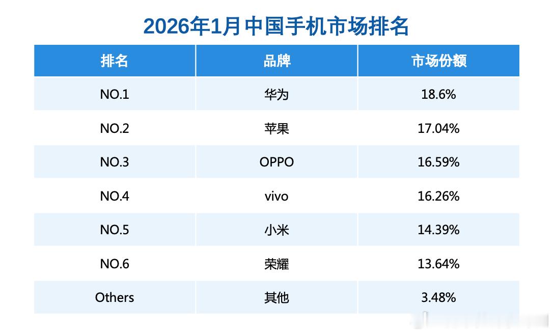 华子很猛啊!华为领跑新年手机市场 市场份额提升至18.6% 华为再夺1月中国手机市场份额第一 看了RD观察公布的统计数据,截至2026年1月底,华为Mate80系列销量约254.32万,超越Mate70同期,市场表现强劲。华为还在1月开启了春节限时优惠,部分手机最高降价2000元,带动多款产品热销,这波新年福利效果不错!