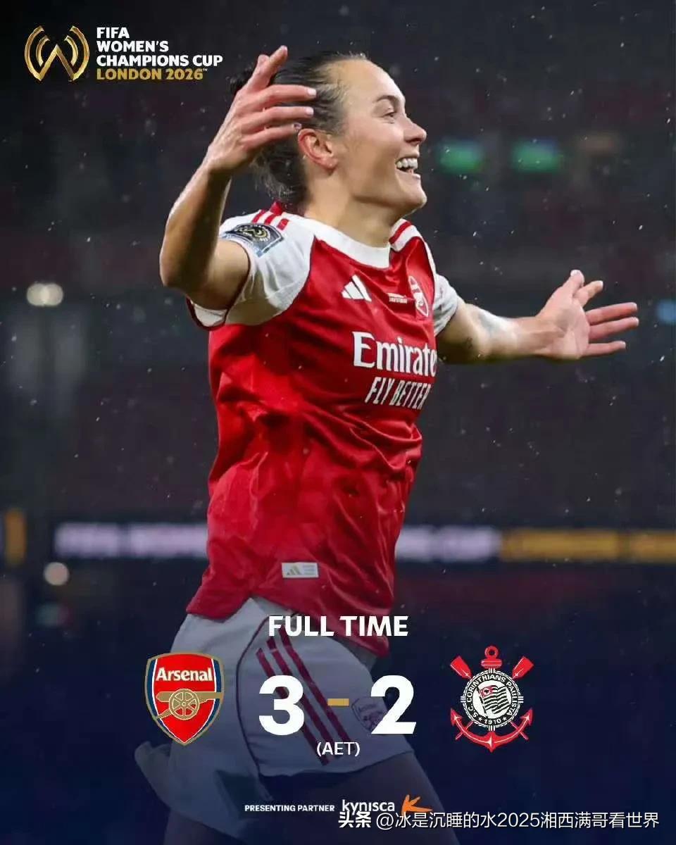 北京时间2026年2月2日02:00(伦敦当地时间2日18:00),英格兰球队阿森纳女足与巴西球队科林蒂安女足的2026国际足联女子冠军杯决赛在英国阿森纳球场进行。结果,阿森纳女足3:2力克科林蒂安女足,获得冠军!