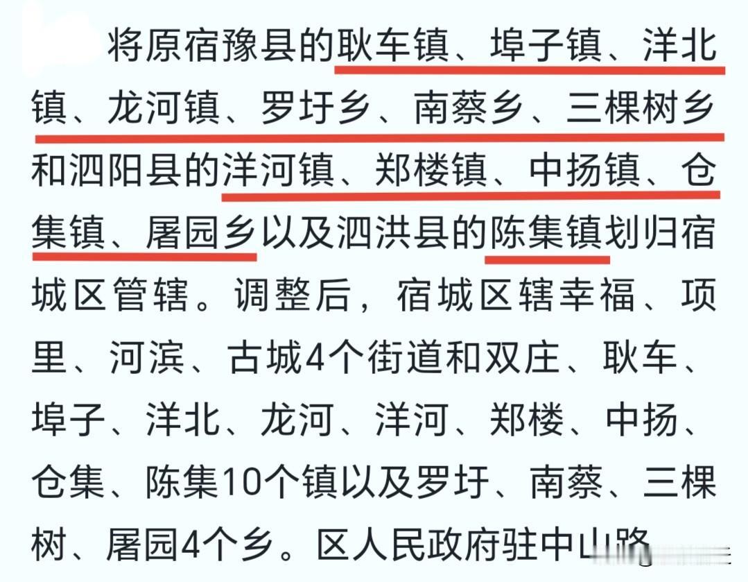 宿迁区划调整真相:2004年宿城区实施扩区,真正的“出血大户”当属宿豫区(原宿豫县)! 1996年,地级宿迁市正式成立,宿豫成为其下辖县。2004年开展区划调整,为增强宿城区的实力,宿豫划出多个乡镇,这些乡镇均是区位与资源更为优越的核心区域,对发展版图影响深远。 这场调整本质上是提升主城区质量的“内部统筹”举措,宿豫牺牲自身版图,推动了宿城的初期发展。而这份贡献也使得宿豫后续的发展布局需要重新规划。