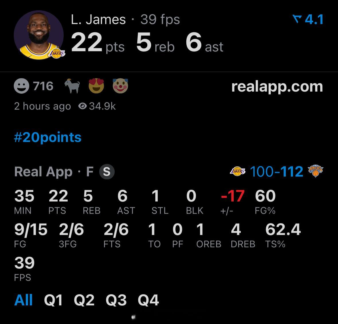 出战35分钟,15投22分,正负值-17如何评价刚刚入选全明星替补的詹姆斯的表现