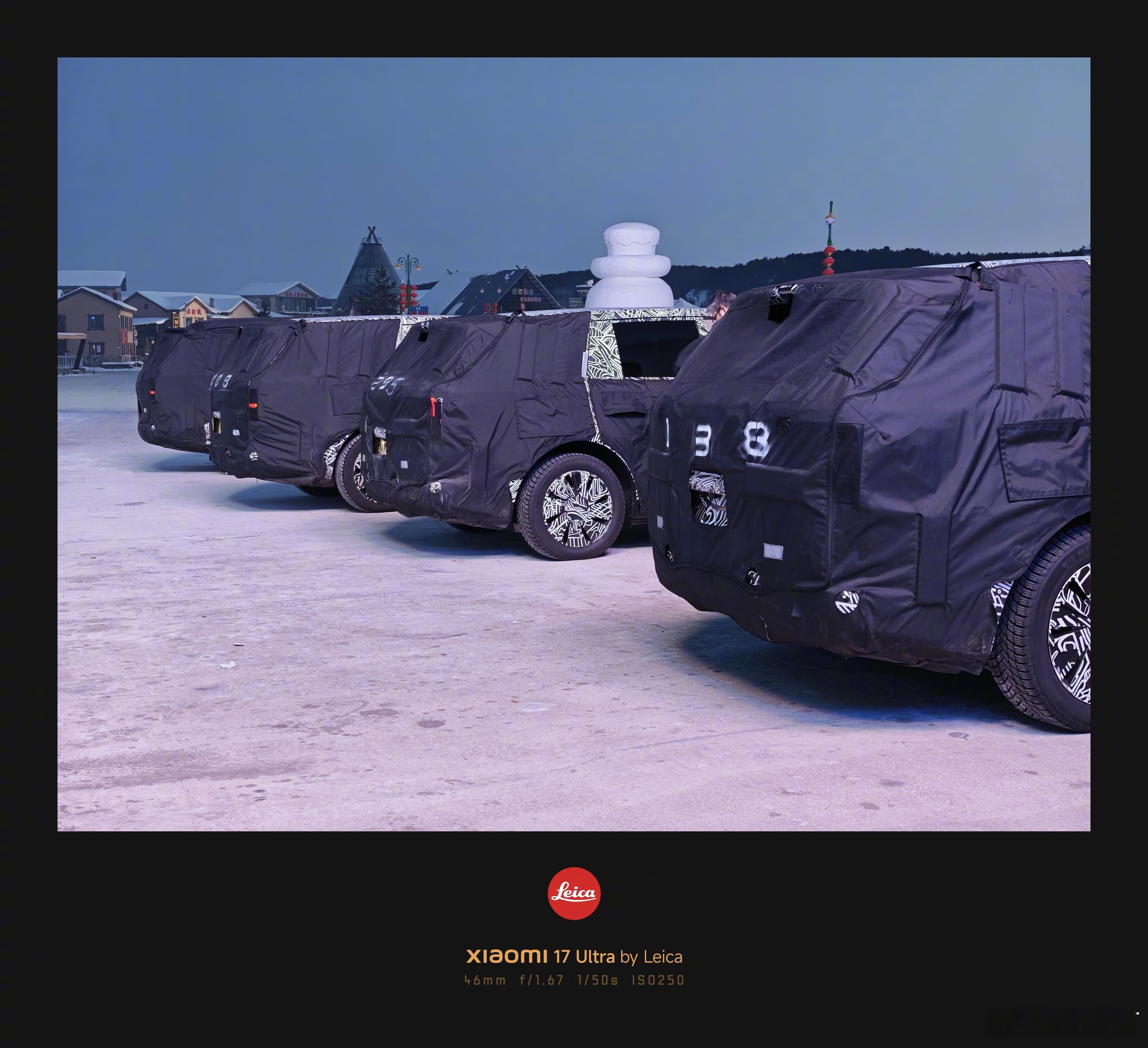 小米大增程SUV冬测。大家看最里面这台车的车顶明显不一样高,会不会是另一台车?有