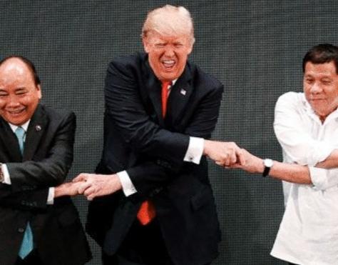 特朗普的表情这么夸张啊! 特朗普握个手这是用了多大力气呢? 特朗普的个性十足的表