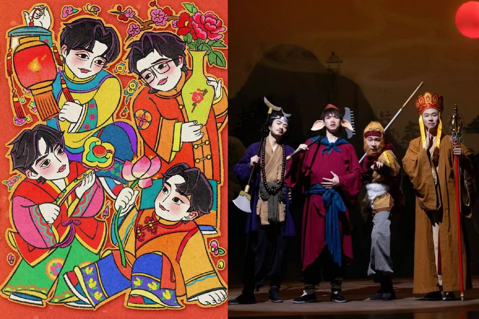 终于知道四士同堂是哪四士了 B站大年初一联欢会 终于搞懂B站“四士同堂”的梗了!原来是以这么欢乐的方式解锁,四位“士”字辈嘉宾往舞台上一站,红袍加身喜气洋洋,简直像从传统年画里走出来的福娃天团,用最接地气又喜庆的表演,把新春祝福直接送到心坎里,太会整活了!