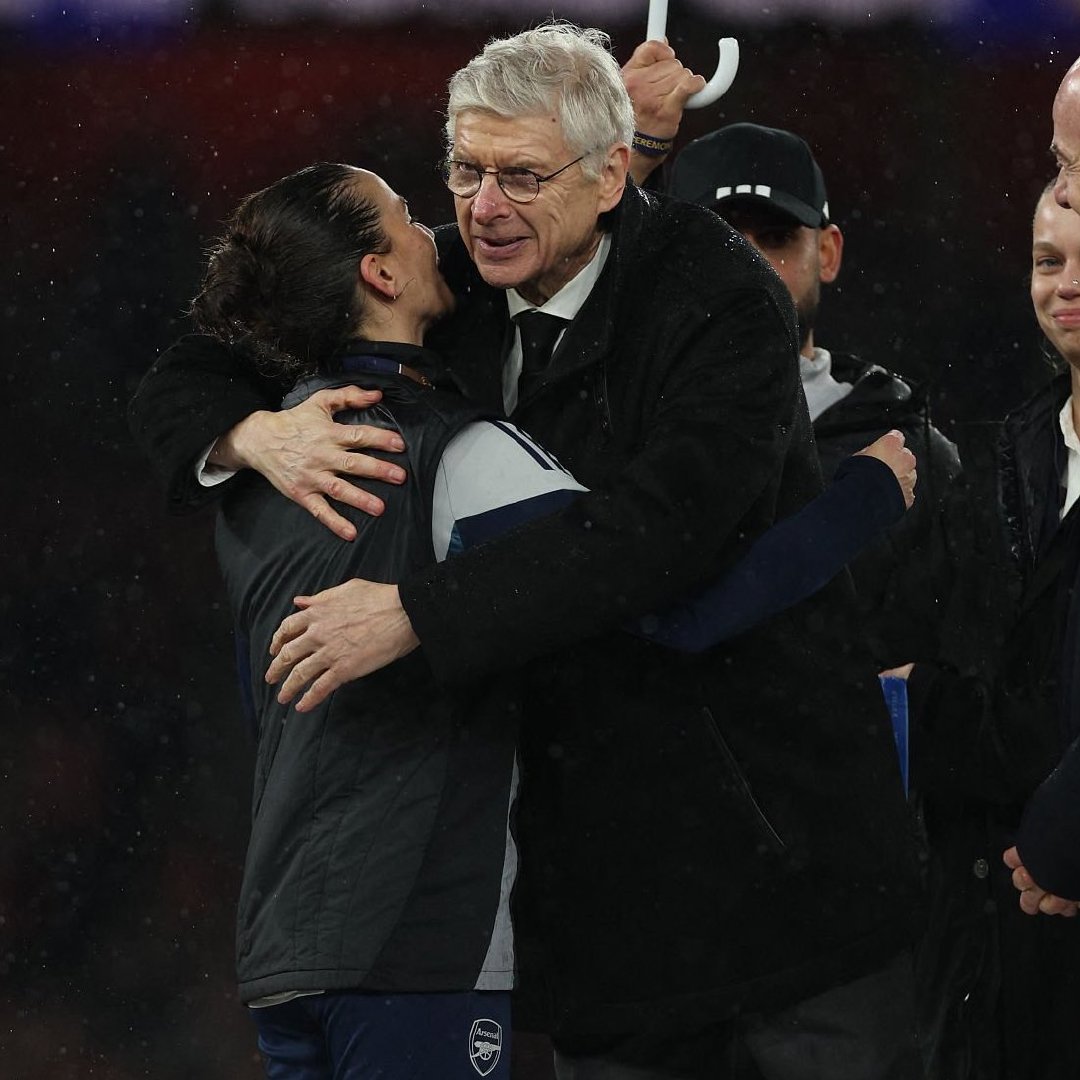 温格昨天回到酋长球场为阿森纳女足颁奖!