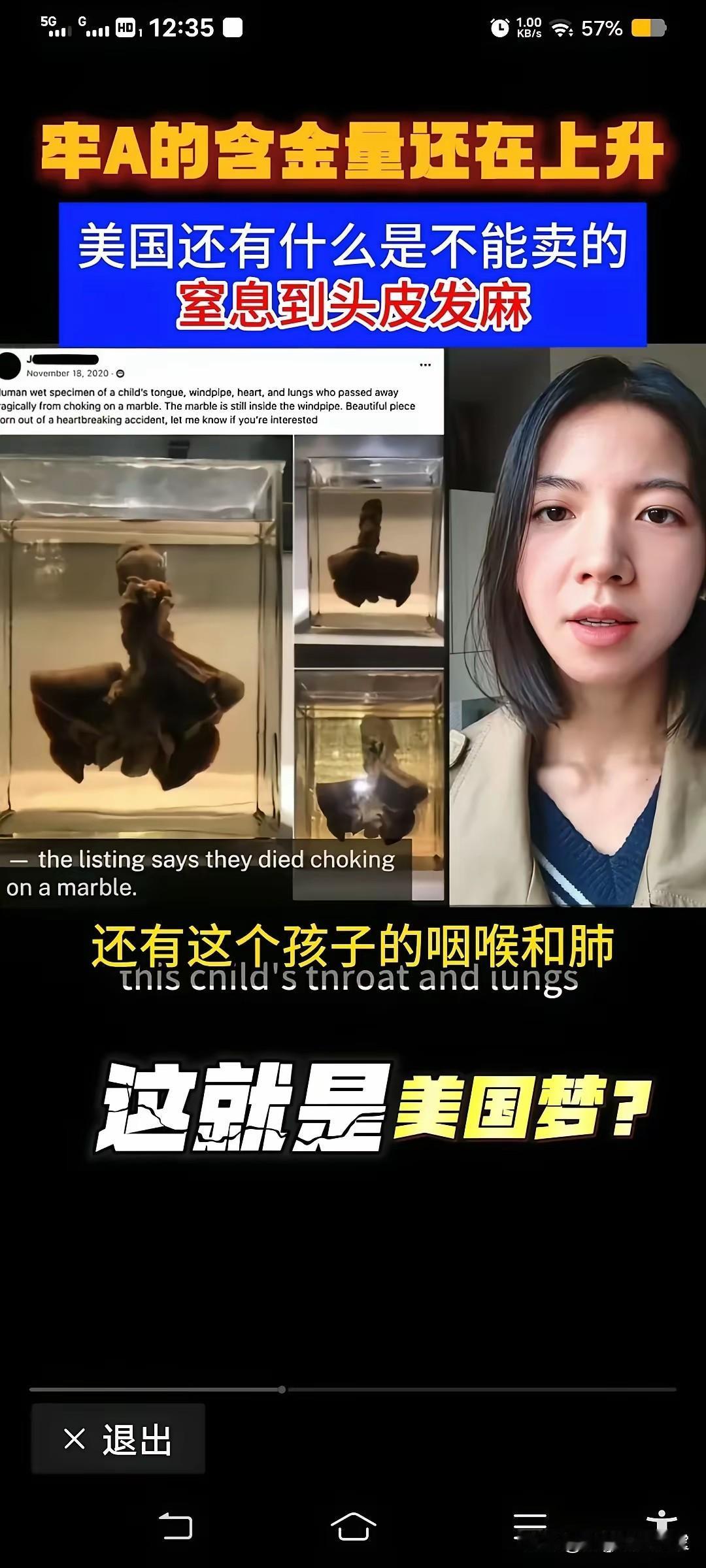 美国版“黑色产业链”,把人命当商品卖 当“自由”变成了可以买卖人体遗骸的遮羞布,当“炫富”的标准刷新到收藏儿童的咽喉和肺,所谓的“美国梦”,不过是一场把伦理和底线彻底撕碎的噩梦。 💀 从颅骨到器官,从古董市场到暗网交易,只要能赚钱,连逝者的尊严都可以明码标价。 😡 更讽刺的是,这些违背人伦的交易,居然在“自由市场”的名义下被默许存在。 🤬 当资本可以践踏一切,当金钱可以定义对错,这哪是什么“梦”,分明是活在现实里的恐怖片。 美国梦碎 资本吃人 人伦底线