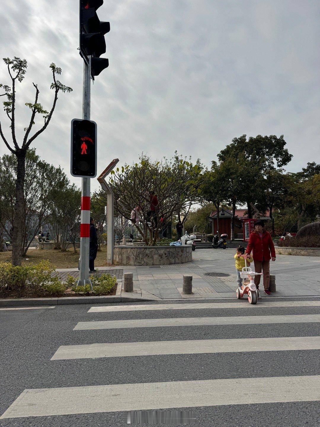 等红绿灯30秒,看着这位“年迈”的阿嬷带着孩子爬树…哎…