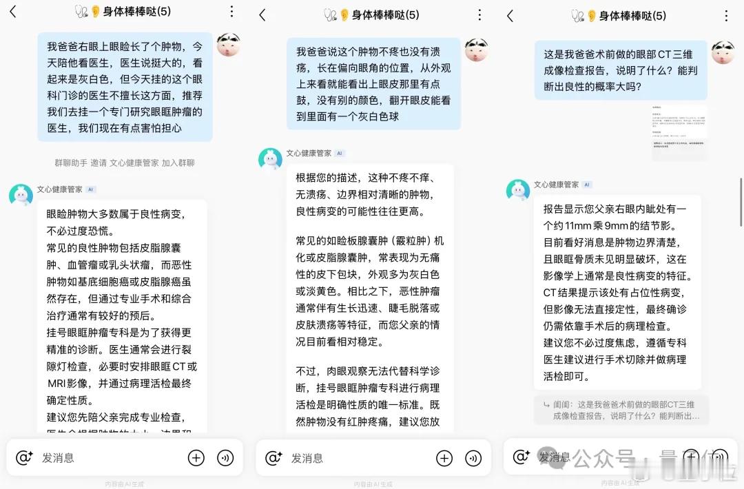 比如年初体检季,家人对着报告单上几个箭头忧心忡忡,亲戚群里七嘴八舌,焦虑在转发和猜测中发酵。这时就可以立刻拉个文心群。