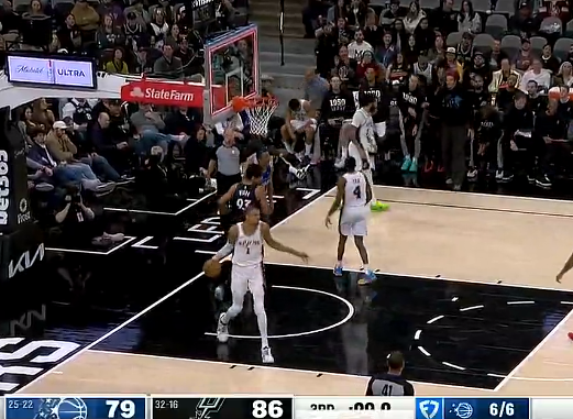 马刺三节比赛86-79领先魔术,马刺单节打出26-18的比分