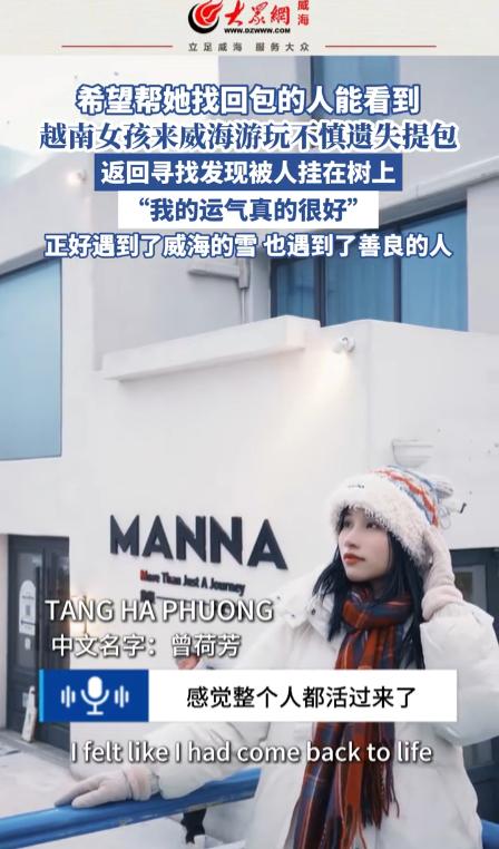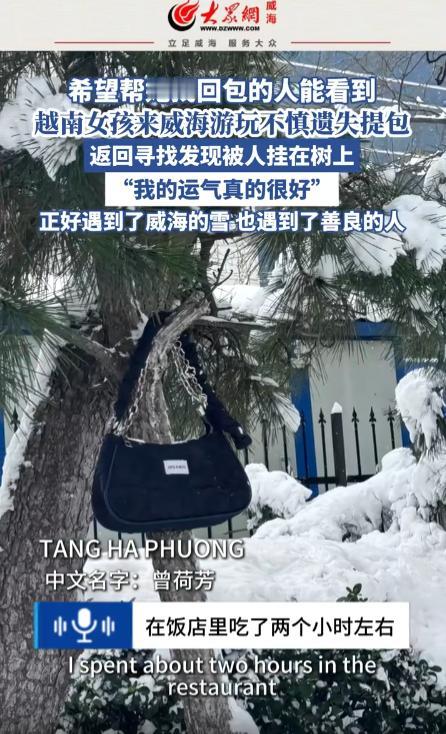 威海,一名在中国留学的越南姑娘,趁着放假来威海旅游,游玩之后,在返程之前,因为太兴奋把包不小心遗失在了路上。姑娘慌慌张张地去找,发现自己的包正正好好地待在路边的树枝上,姑娘发视频感谢捡到她包的人,还说因为这件事,就喜欢上了这个城市。 曾荷芳是个来自越南的姑娘,目前正在中国留学,趁着放假,她特意提前订了票,专程来威海旅游。 她早就听说威海是有名的“雪窝子”,而在终年不下雪的越南,她从来没见过真正的雪,心里一直满是期待。 这次来威海,她运气特别好,刚好遇上了降雪,洁白的雪花落在海边、街道上,美得让她挪不开眼,她拿着手机拍了好多视频和照片,连看海鸥的时候,都忍不住和朋友在海边跳了起来。 在威海痛痛快快玩了三天,曾荷芳就准备返程了,只是她没料到,意外会在离开前的几个小时悄悄发生。 返程前,她和朋友找了家小店吃午饭,一路上玩得太尽兴,又忙着规划返程的路线,她压根没注意到,自己的手提包已经不小心遗失在了路上。 两个人边吃边聊,不知不觉就吃了将近两个小时,直到结完账,准备起身去车站的时候,曾荷芳伸手去拿包,才发现手里空落落的。 那一刻,她瞬间慌了神,手心都冒出了汗,因为包里装着她的护照,还有其他重要物品,要是真的丢了,麻烦可就大了。 她来不及多想,拉着朋友就匆匆冲出小店,沿着刚才来的路,一路折返寻找,眼神紧紧盯着路边的每一个角落,心里又急又乱,甚至开始忍不住胡思乱想,担心包被人捡走,里面的东西被拿走。 两个人沿着道路找了一阵子,就在曾荷芳快要失去信心的时候,忽然瞥见不远处的树枝上,挂着一个熟悉的东西,正是她遗失的那个包。 那根树枝不算高,位置也很显眼,不管是路过的行人,还是折返寻找的失主,都能很容易看到。 曾荷芳赶紧跑过去,小心翼翼地把包取下来,打开一看,心里的石头瞬间落了地,包里面的护照、物品,一样都没少,完好无损地放在原地。 她悬着的心彻底放了下来,心里满是感激,虽然不知道是谁捡到了她的包,又特意挂在显眼的树枝上,但这份善意,让她心里暖暖的。 回去之后,曾荷芳特意拍了一条视频,讲述了自己丢包又找回的经历,言语里满是对捡包人的感谢,还说因为这件事,自己彻底喜欢上了这座城市。 这条视频发布之后,很快就引发了网友的热议,只是让人觉得有意思的是,威海本地网友的评论,大多都很淡定。 有威海网友留言说,这有啥稀奇的,在我们威海,这都是很平常的事,算不上什么大事。 还有网友分享了自己的经历,说自己曾经拿完快递,到家才发现快递落路上了,回去找的时候,发现快递被环卫大叔放在了路边的栏杆缝里,特意留着等失主来取。 也有人说,自己曾经捡到过一副雪白的手套,没找到失主,就随手挂在了路边的路桩上,希望手套的主人能看到,顺利把它找回去。 看着这些评论,就能发现,在威海,捡到别人丢失的物品,不偷偷拿走,而是放在显眼的地方,等着失主来寻找,早就成了本地人的一种习惯。 他们不觉得这是多么高尚、多么值得炫耀的事,也不图什么回报,只是下意识地做了自己该做的事。 说到底,这就是最简单的社会公德,也是一座城市最动人的风气,不需要刻意宣传,不需要刻意标榜,就藏在这些不起眼的小事里。 对曾荷芳来说,她来威海,不仅领略到了美景,感受到了下雪的快乐,更因为这件丢包又找回的小事,感受到了威海人的善良和真诚。 而对威海本地人来说,这种举手之劳的善意,从来都不是什么特例,只是融入日常的一种习惯,是刻在骨子里的温柔。