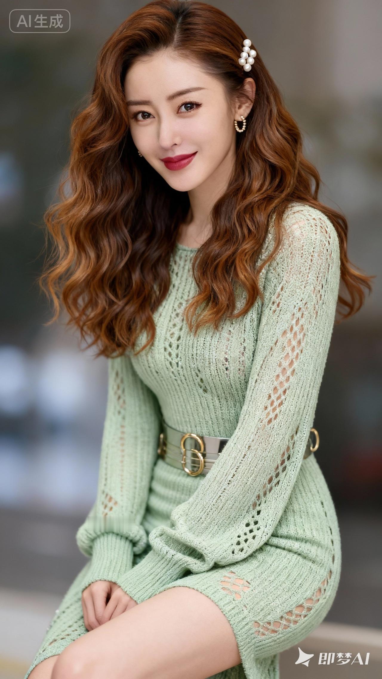 温柔甜美的针织连衣裙,搭配珍珠发饰,尽显优雅气质!🌸👗💍