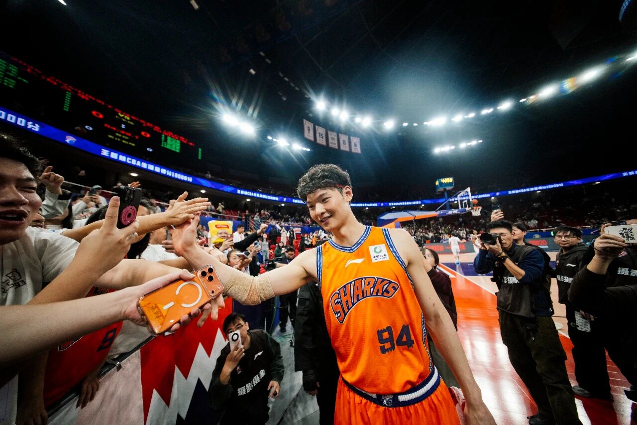 配文:2026年1月27日,上海体育馆的欢呼为CBA联赛又一历史瞬间定格——上海久事男篮队长王哲林用一次标志性的内线强打,将个人生涯总得分镌刻在10000分的刻度上,成为联赛历史第六位、现役唯一的“万分先生”。