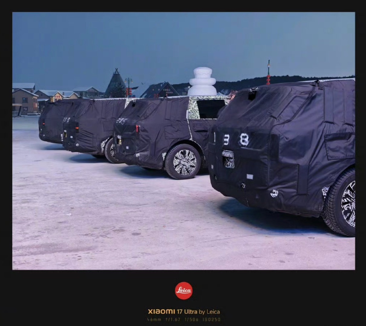 小米高管发的测试车照片最后一台车,车顶高一块大家猜猜这是什么?