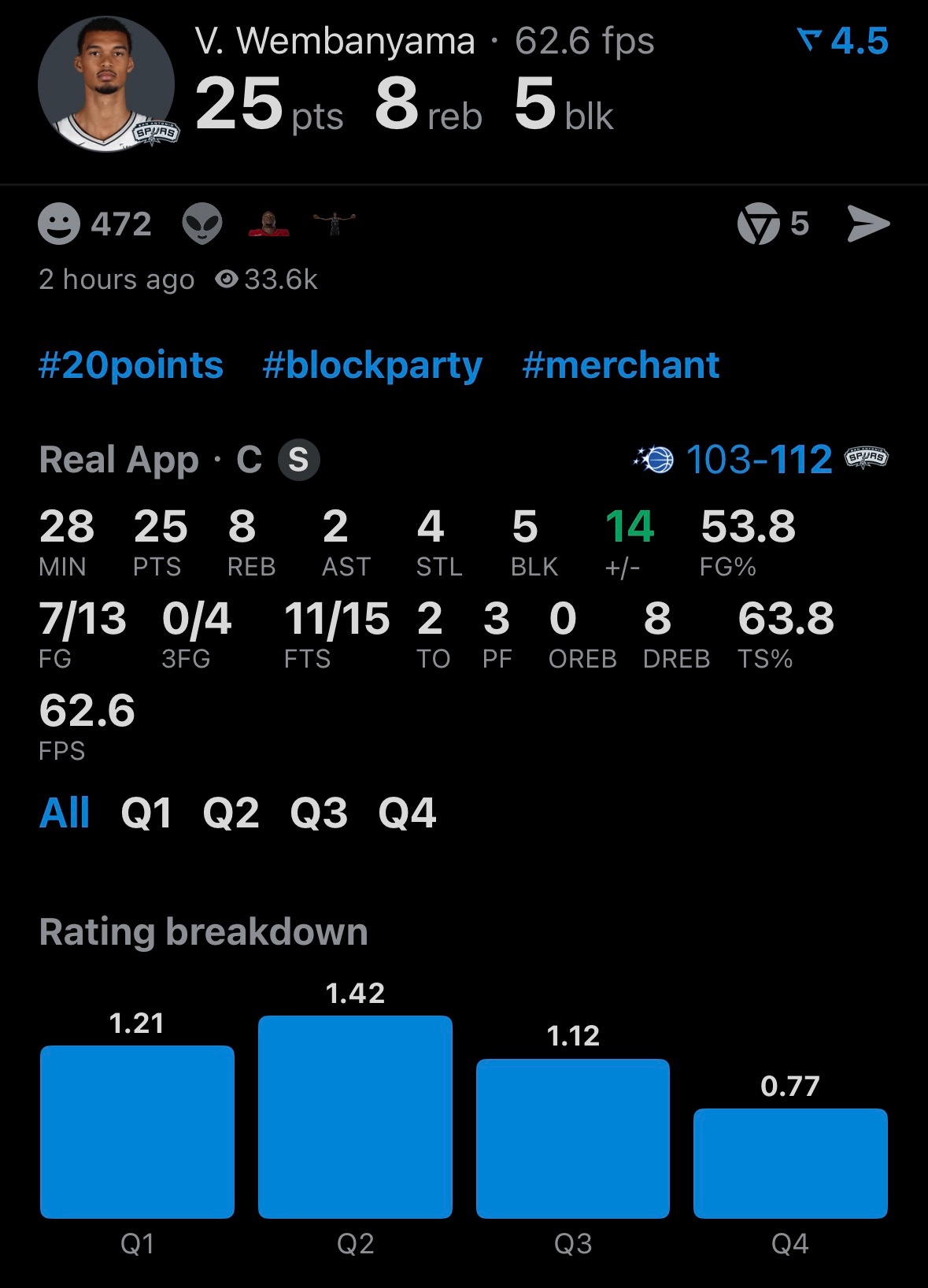 文班亚马真正的怪物“你什么状元,我什么状元”文班4抢断5封盖,班凯罗慢慢悠悠运球过半场然后打个铁或者来个失误,防守更是没眼看