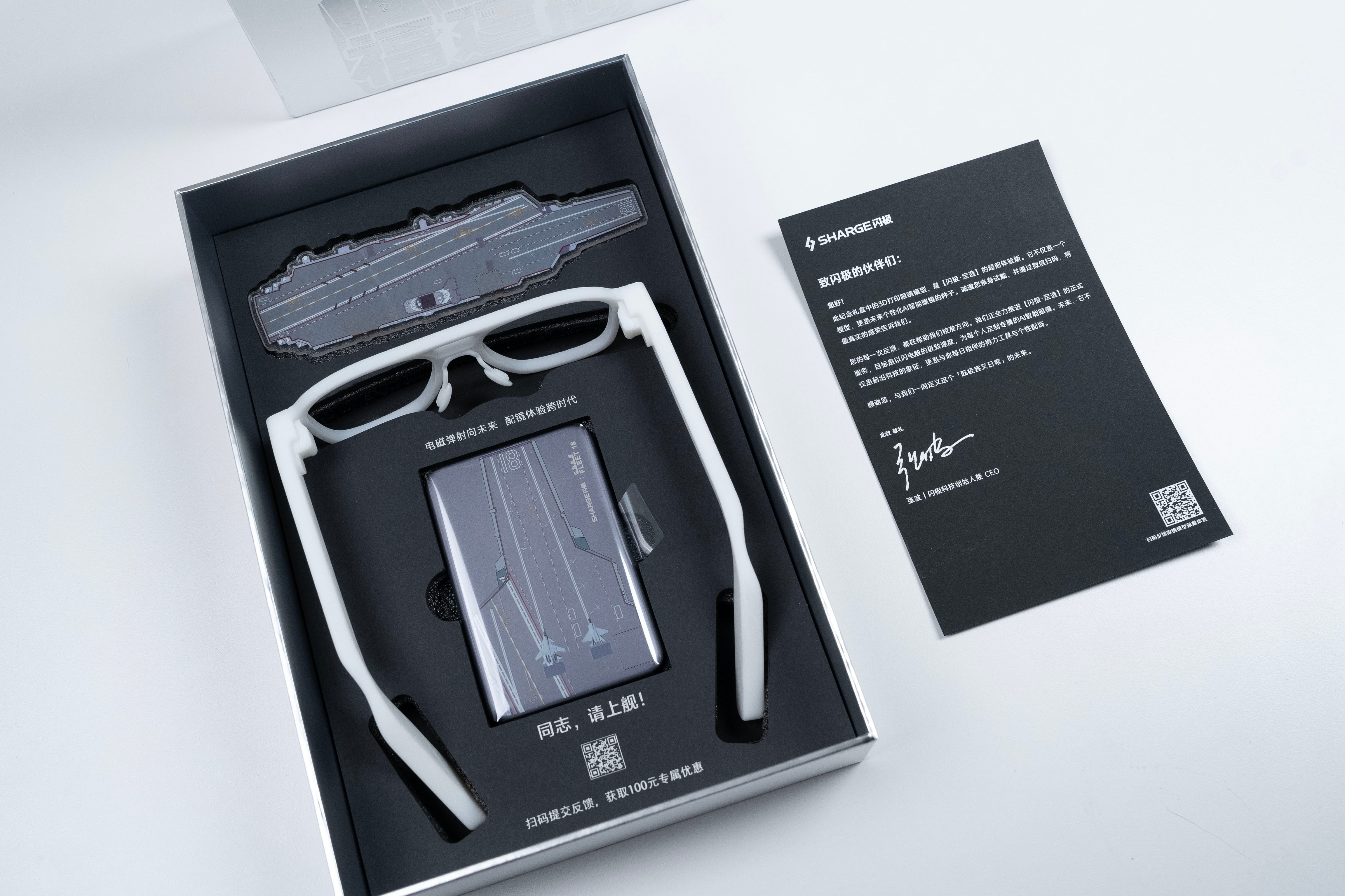 咦,收到了闪极和中国航母联合发布会的礼盒,3D 打印眼镜,还有一款新品磁吸充电宝