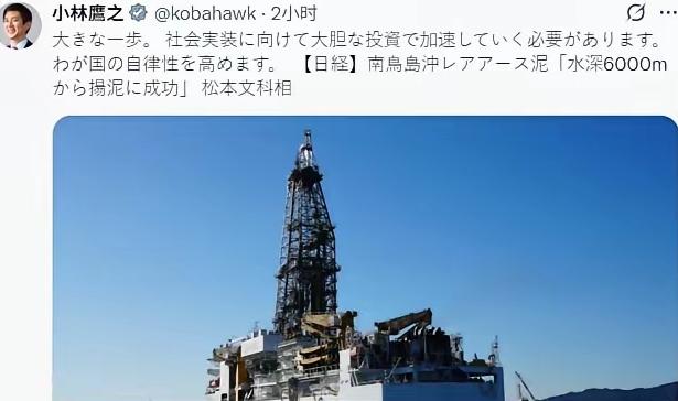 今天(2月2日),日本终于从南鸟岛附近6000米海底打捞出了稀土泥。 这一消息让日本政界翘首以盼。自民党政客小林鹰之公开表示,已经迈出关键一步,呼吁加速投入,希望提高日本自己的稀土自主掌控力。 海底稀土计划在日本讨论多年,直到这次才进入实际操作阶段。勘探船“地球”号历时十余天,最终带回稀土泥,技术团队也确认含有稀土元素。 不过这些“泥巴”究竟富含哪种稀土、有效含量是多少,全无定论。就像在沙滩里找金子,找到几粒不代表能够批量提炼黄金。 从试验到规模生产,意味着大规模打捞、分离工艺、提纯流程都要全线攻关。 6000米深海不是工厂门口,光海底打捞就像在井底舀水远胜日常操作;日本所需分离和提纯技术尚未成熟,加工难度好比用水壶过滤咖啡渣造出高纯度咖啡因。 即使未来能实现量产,时间成本与现实需求始终无法对接。日本汽车和半导体产业急需大量稀土原料,其供给缺口远不是这点实验成果能填补。 假如仅凭检测结果就设想广泛应用,美国登月归来的月壤中如发现稀土,那是否要造飞船上月球采矿?这种思路只是政治秀场的幻想。 小林鹰之声称要加码投资,带有浓厚政治意图。选举临近,他放大这个试验进展,以迎合民众对资源安全的期待。 但距离真正缓解产业焦虑,还隔着技术与时间的鸿沟。从试验样本到工厂量产,这条路道阻且长。 对于日本现有工业系统而言,指望深海稀土改变困局,如果没有突破性技术,终究只是杯水车薪。 从目前看,短期内深海稀土并不会成为日本解决稀土自给问题的真实答案。 未来如果分离与量产技术取得实际进展,或许会对供应结构有所影响,但现在还只是停留在象征意义上的尝试。
