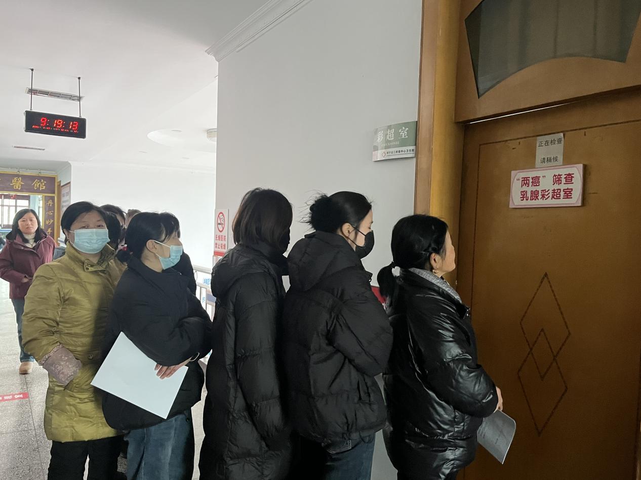 在三桥镇中心卫生院筛查现场,前来接受检查的妇女手持登记单,排起队伍,有序等候乳腺彩超、妇科检查等检查项目。为让筛查工作稳步有序推进,三桥镇中心卫生院提前部署,优化服务流程,明确各岗位职责分工、细化每个服务环节等举措,确保登记、检查、健康咨询等全流程衔接紧密、运转顺畅,最大限度减少群众等候时间。