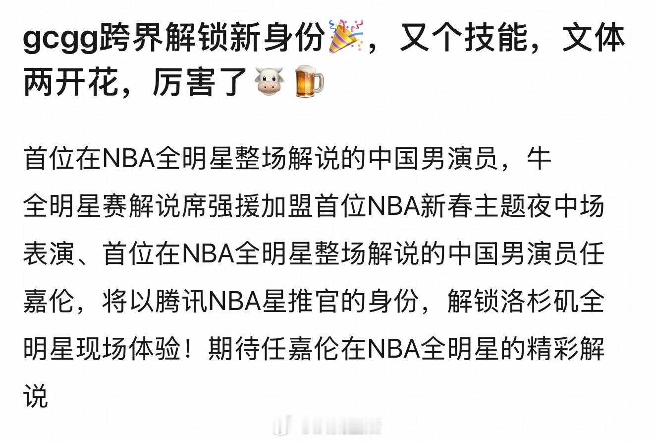 任嘉伦跨界好成功,首位在NBA全明星整场解说的中国男演员。马上还有新的国民品牌商